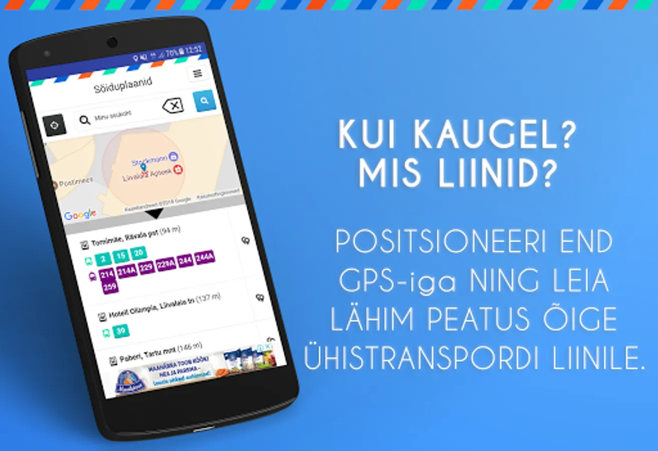 Tallinn Public Transport Application, which allows you to quickly and easily ride in Tallinn by bus, tram and trolleybus. Shows actual departure times, plus the ability to locate your location with GPS, and you can quickly and easily find out the closest stops and public transit times.