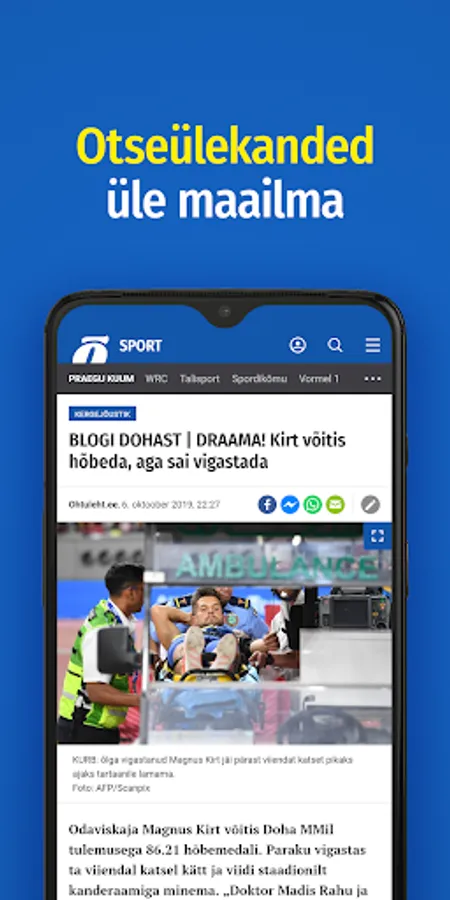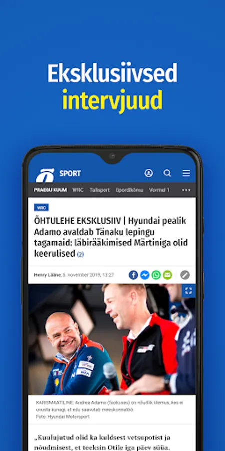 With the Õhtuleht Sport app, you will get the latest sports news from us and elsewhere! In-depth analyzes from behind the scenes of the sports world and several live broadcasts from Estonian sports competitions are just one click away. Do you want to know how Ott Tänak or Kelly Sildaru is doing? Or what do Anett Kontaveit or Ragnar Klavan think? In the Õhtuleht Sport app, you can also find the most exclusive interviews with top Estonian athletes.