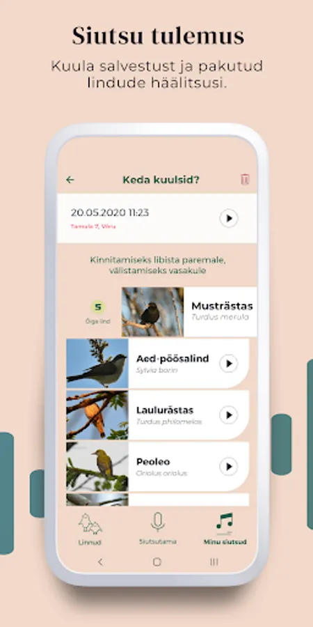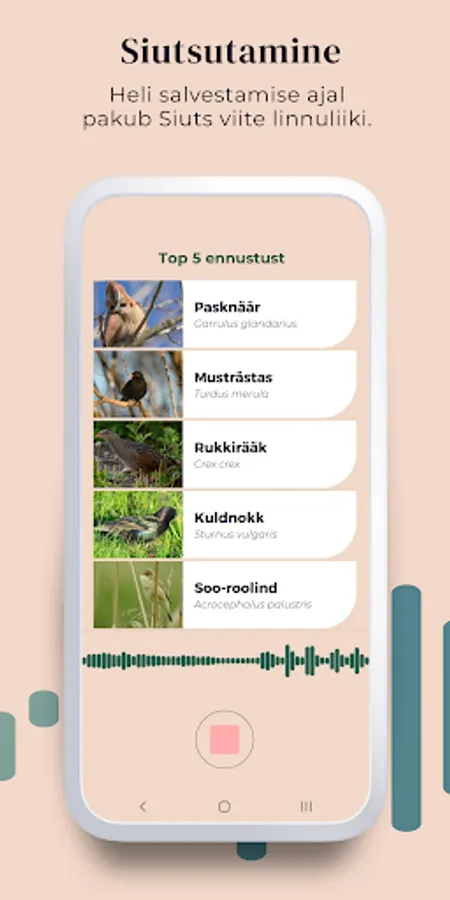 & # 8226; & # 8195; Identify the birds to be heard on the recording. To do this, Siuts offers the 5 most probable bird species, thanks to which you can: