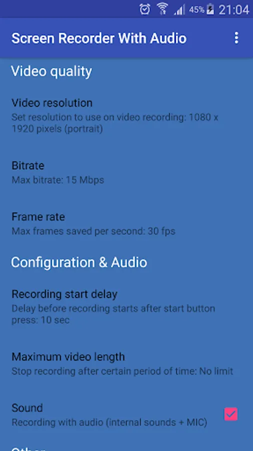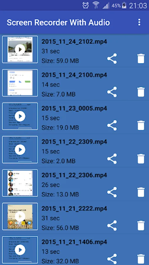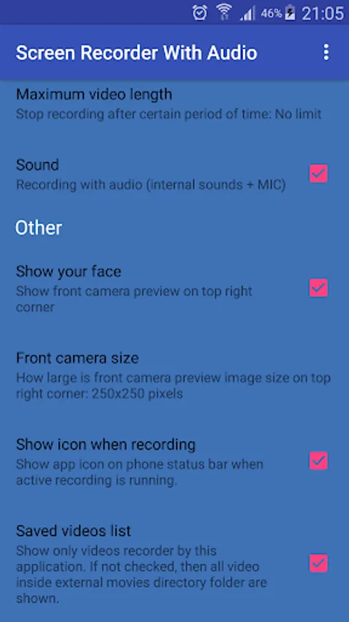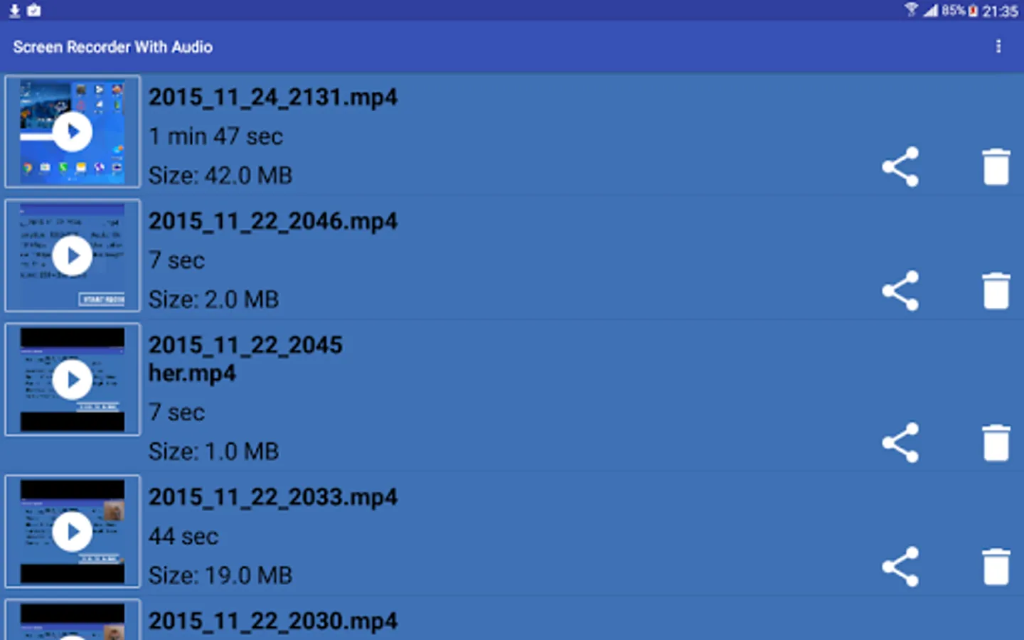 Simple Screen Recorder is application that provides functionality to record your device screen including microfon audio. Later you can manage saved videos, share or send them to anyone.
