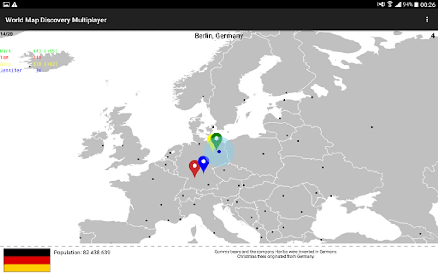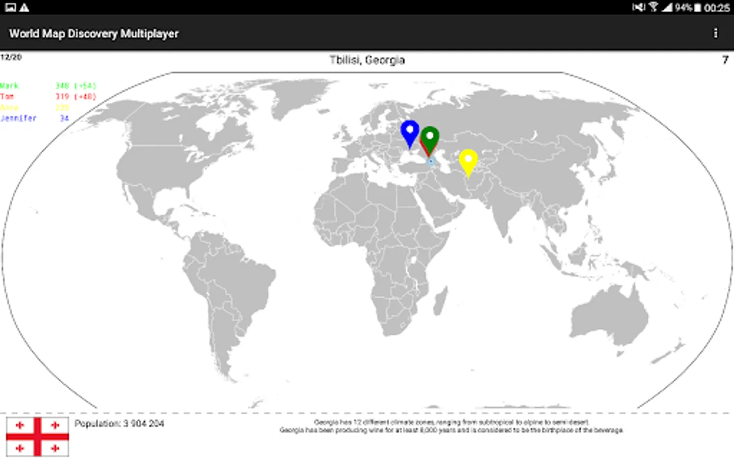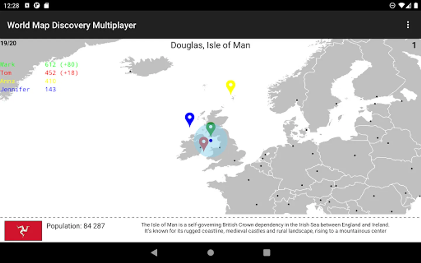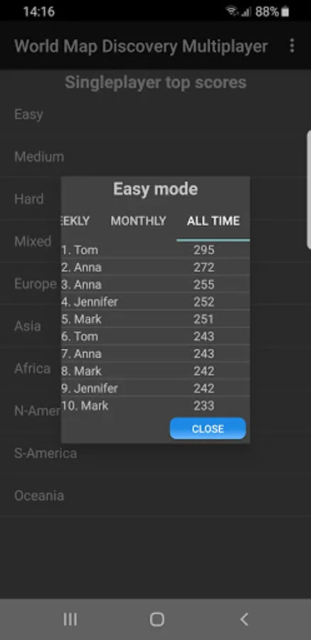 To compete with your friends or family online, ask them to download the app. Then you can create or join multiplayer games where you can play with them simultaneously and figure out who knows the world map best.