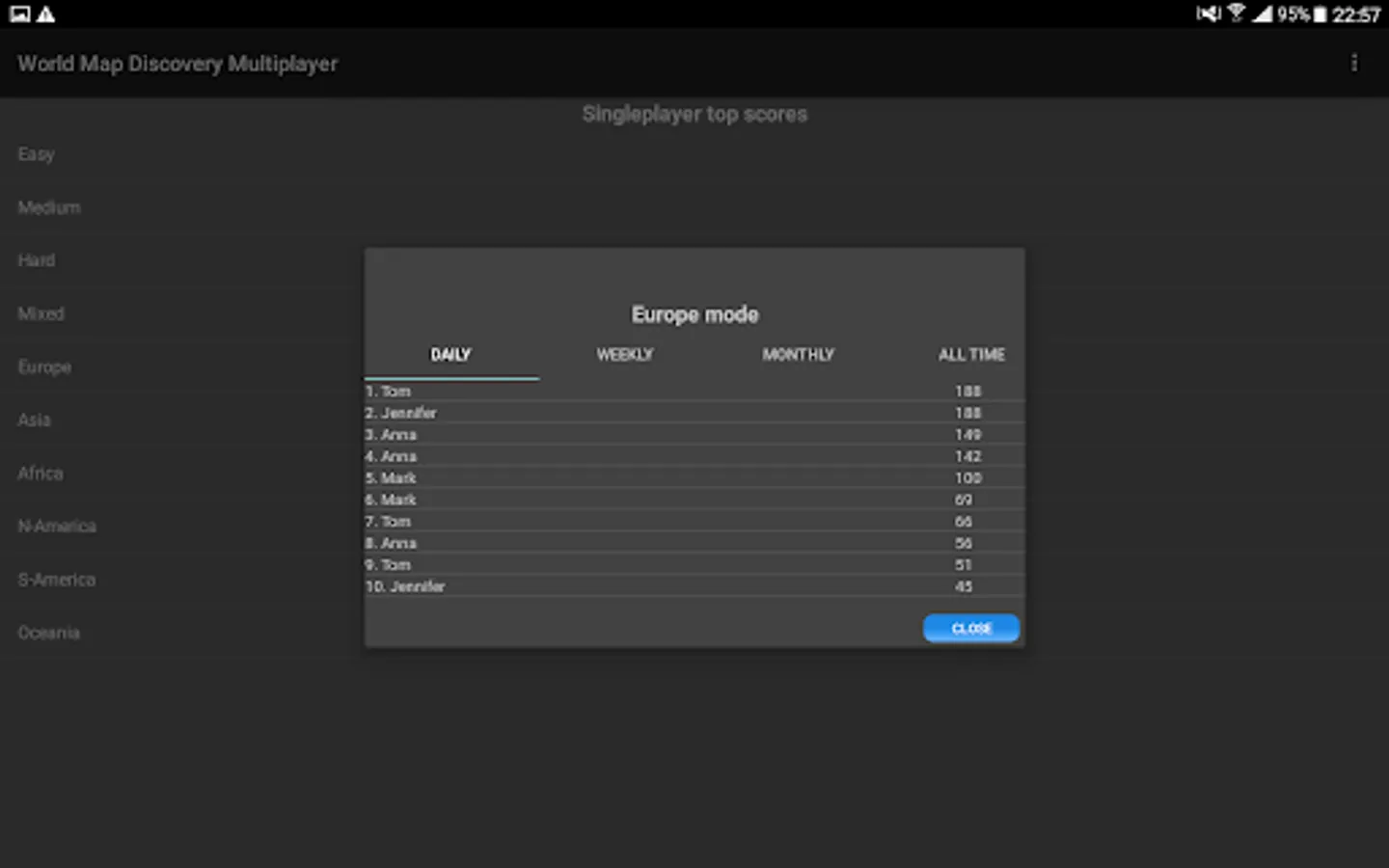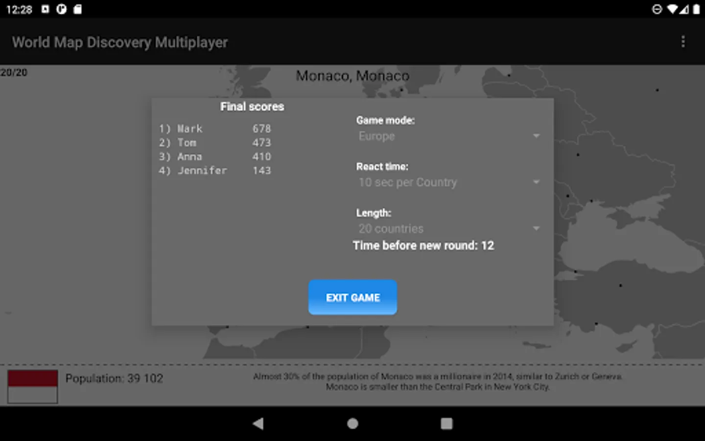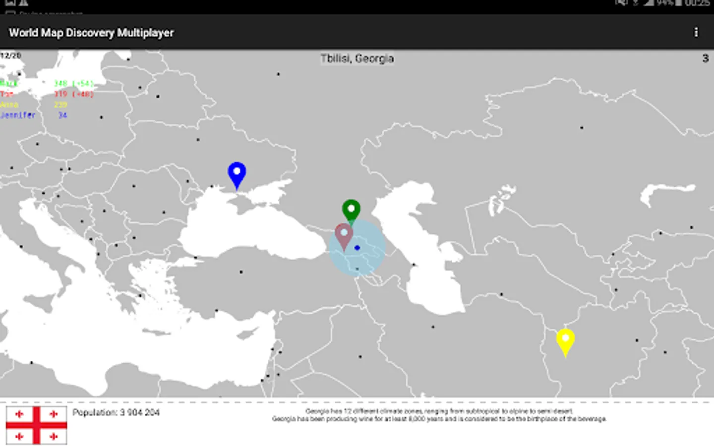 To compete with your friends or family online, ask them to download the app. Then you can create or join multiplayer games where you can play with them simultaneously and figure out who knows the world map best.