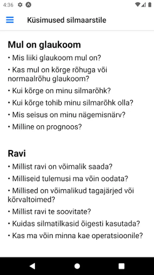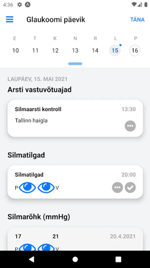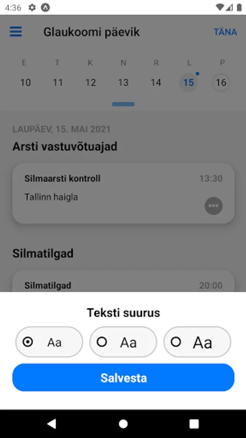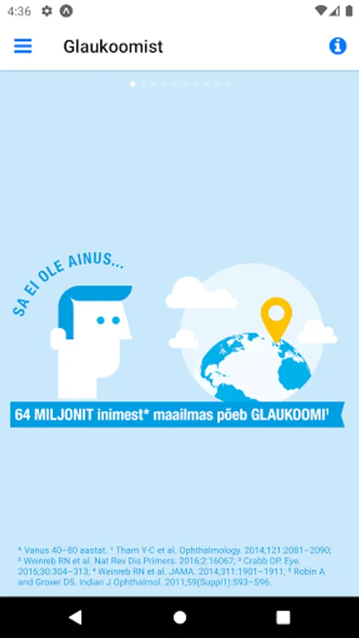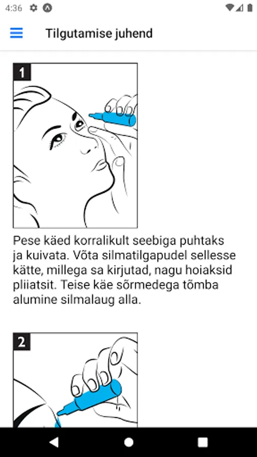 The app also contains detailed instructions for instillation and general information about glaucoma. If necessary, you can change the text size. For the visually impaired, the app provides instructions for using the built-in screen reader (TalkBack).