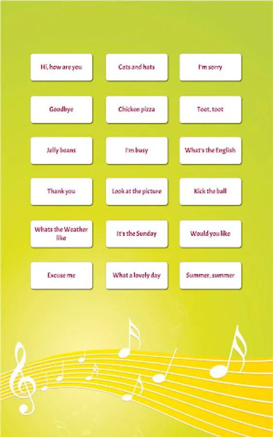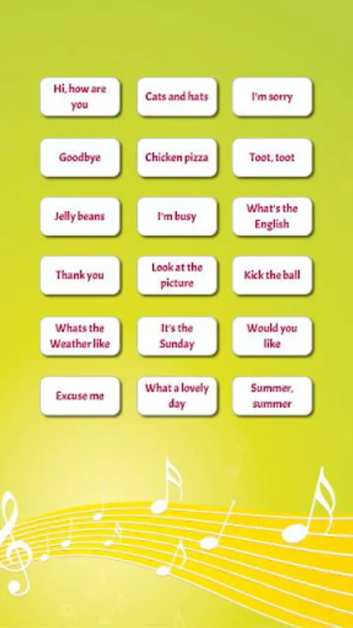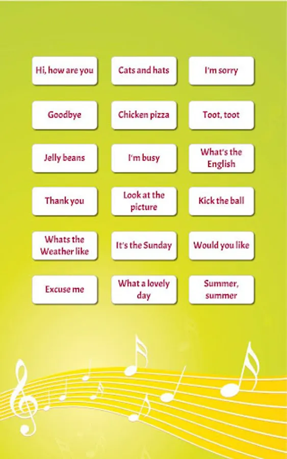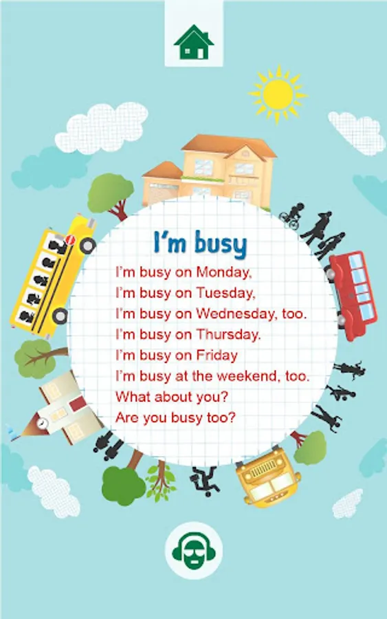 Everyday phrases in Rhythm and Rhyme for Young LEARNERS of English. Vocabulary and grammar patterns in the delightful chants with a background of music keep learning fun. Enjoy.