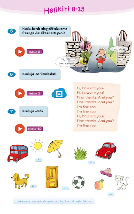 "Oral eelkursus" is a study set to "I Love English 1" oral eelkursuse digital version. It is suitable for practicing both in the classroom and at home. Studying the sounds and words, is learned Diacritical and practice of dialogue and the rhythm of the verses. Touches makes studying pronunciation sounding pleasantly modern. Videos rütmisalmide performances give teachers and parents the ideas in fun liikumisseadeteks.
