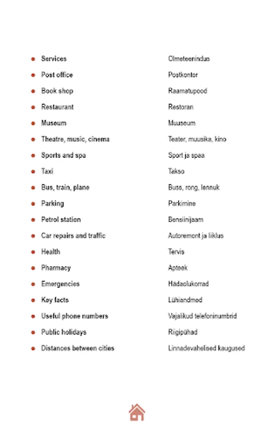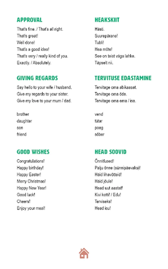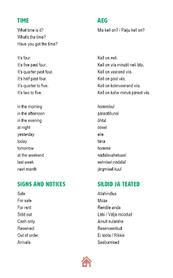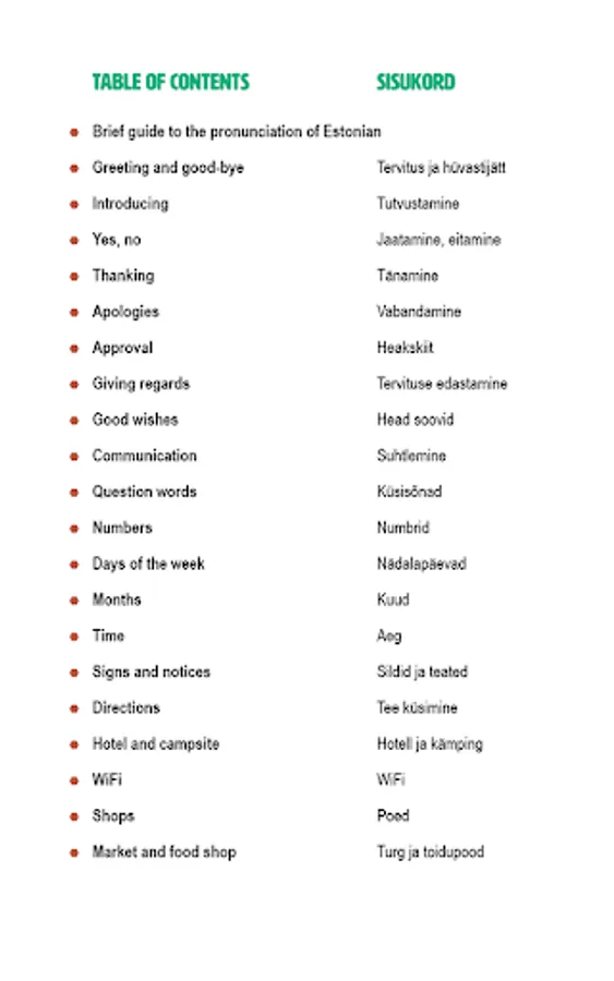 Phrasebooks are redundant in English and Estonian prime necessity sentences and phrases, which are able to make himself understood, to communicate in different places and situations. The publication is also possible to use a simple word on the way from English into Estonian and vice versa. Audio phrases phrases, phrases, and words do not have an exact translation, but the perfect way to express itself in this situation.