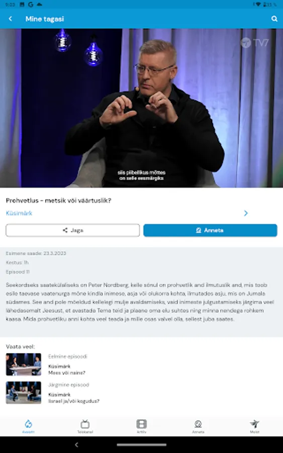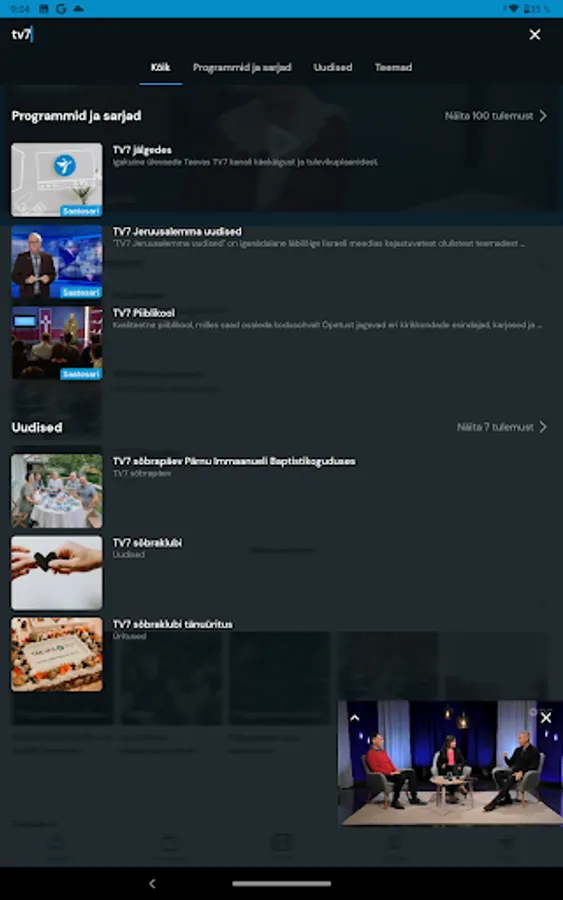 With the Taevas TV7 application, you can see the programs broadcast on the channel, which have the right to be shown on the Internet. Copyright protection limits the ability to show all programs.
