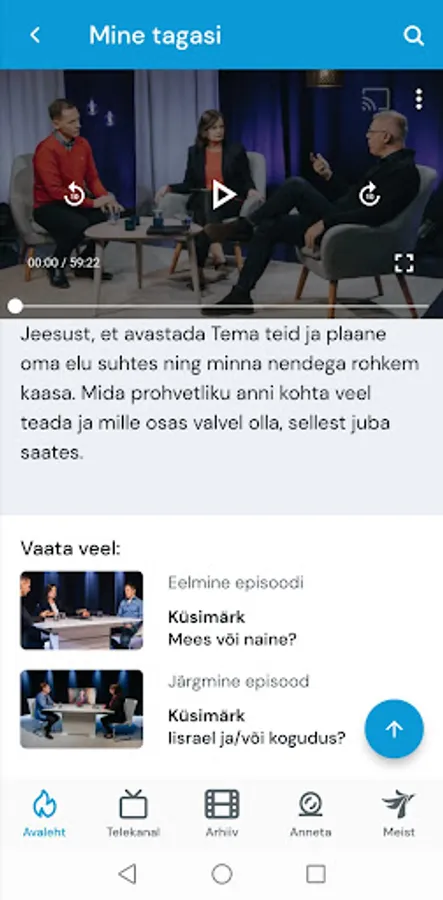 With the application, you can watch Taevas TV7 net TV, program archive and program schedule. The application allows you to search for programs in the archive.