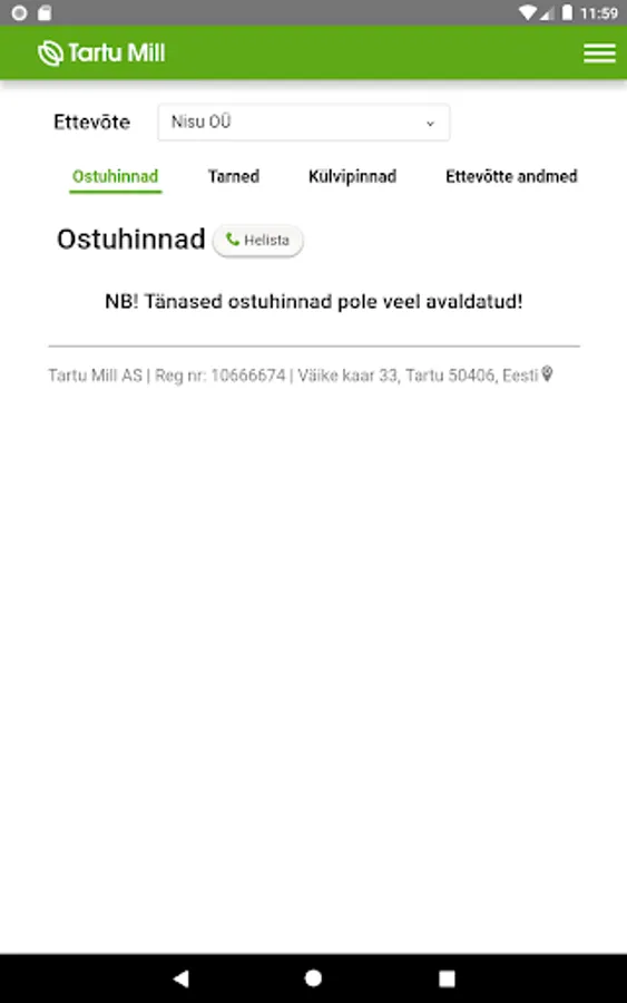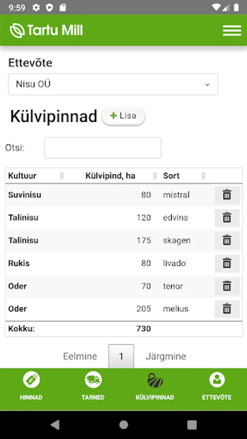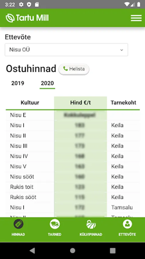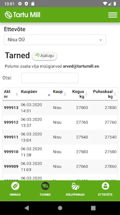 The Tartu Mill Partner application is a mobile self-service for grain suppliers of Tartu Mill AS, which conveniently provides up-to-date information regardless of your location.