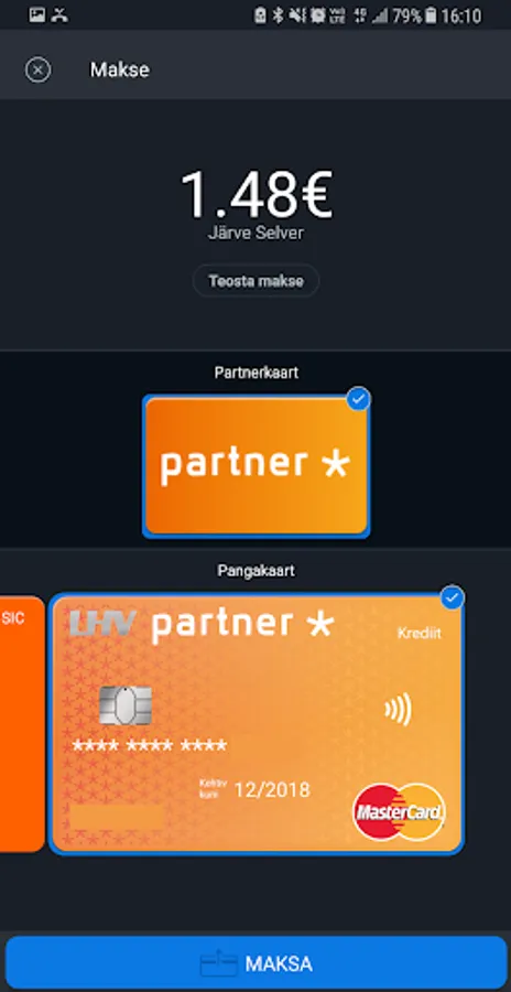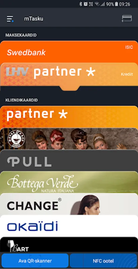 In mTasku you can save various bank cards and customer cards that give discounts.