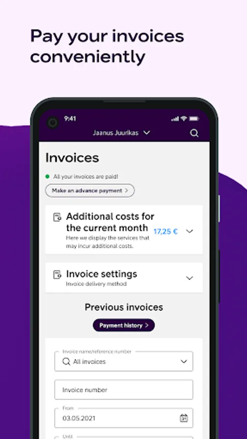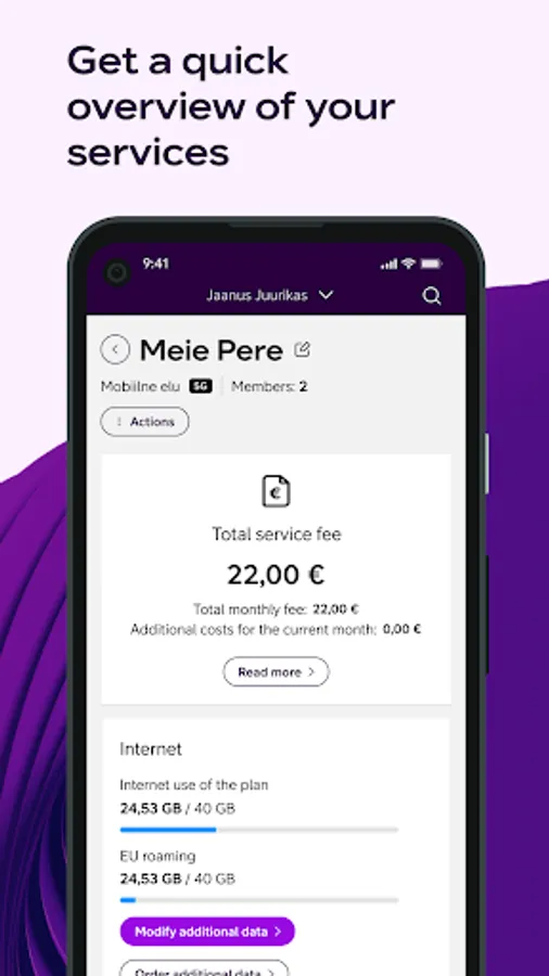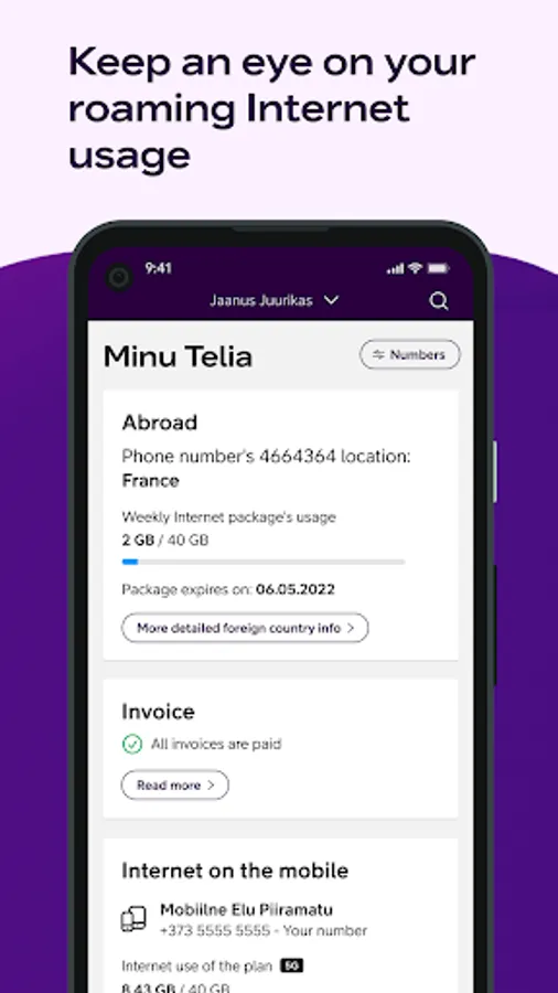 We are constantly developing the app. For us to be able to provide our users with the best possible service, please be sure to let us know if you encounter any errors. All your suggestions and feedback can be sent to us conveniently via the app. The corresponding form is located under the menu item ‘More’. Read more about the Minu Telia app on our website: https://www.telia.ee/era/lisateenused/minu-telia-app