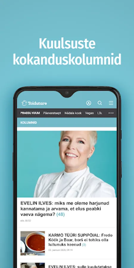 • Read celebrity cooking columns such as Evelin Ilves Kokakool or Karmo Tüüri Supipöial