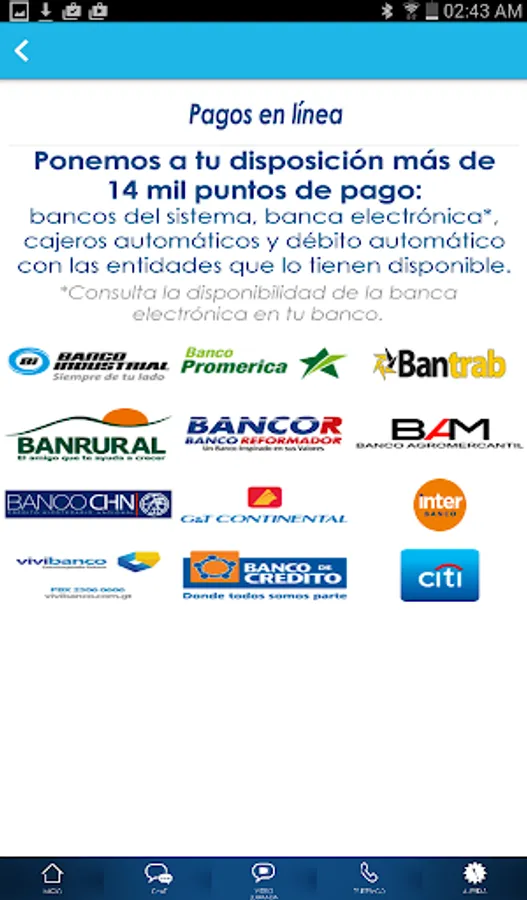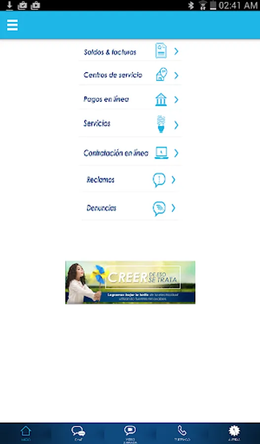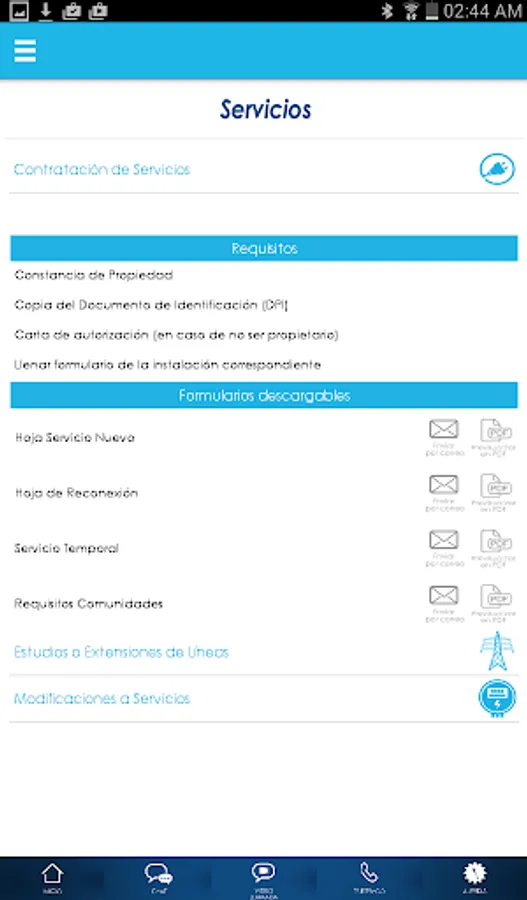 This application has integrated video care, chat and Teleservice as tools of inquiry, if you want to communicate directly with one of our service agents.