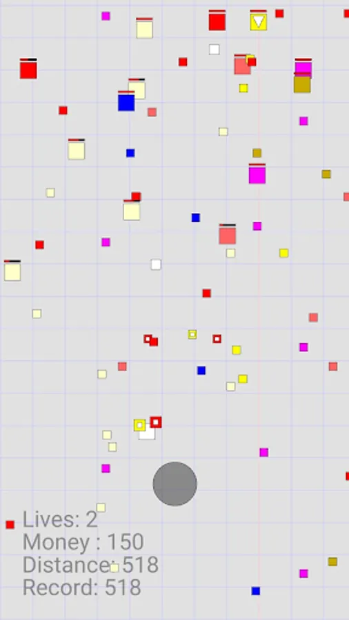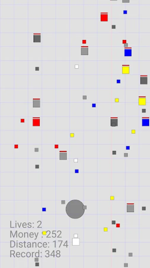 You play a white square and have to defend yourself against an army of colored squares. The "joy-stick" for moving will appear when the screen is touched and bullets will be shot automatically every once in a while.