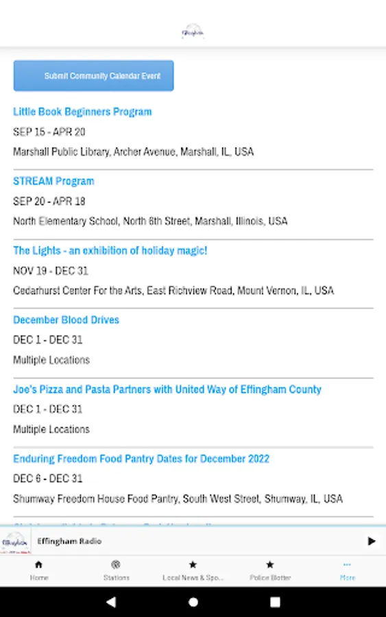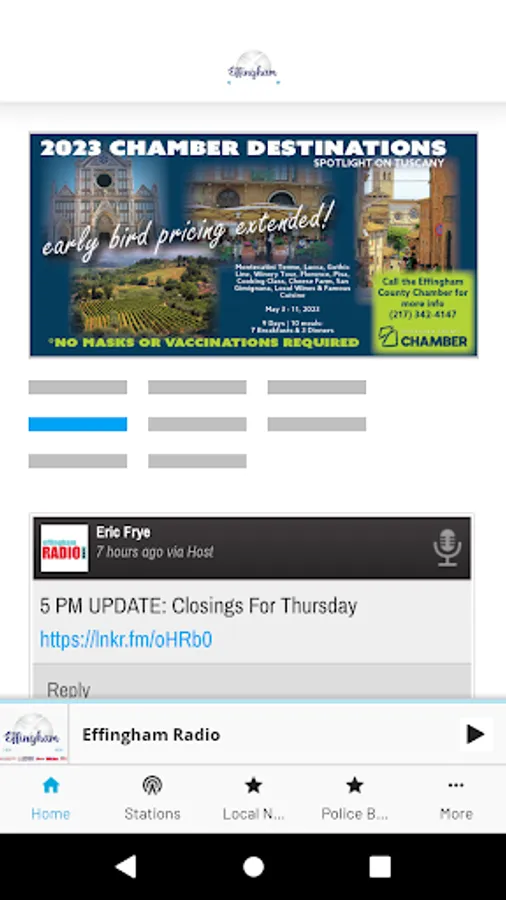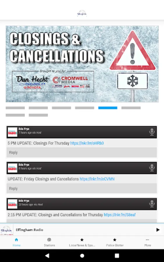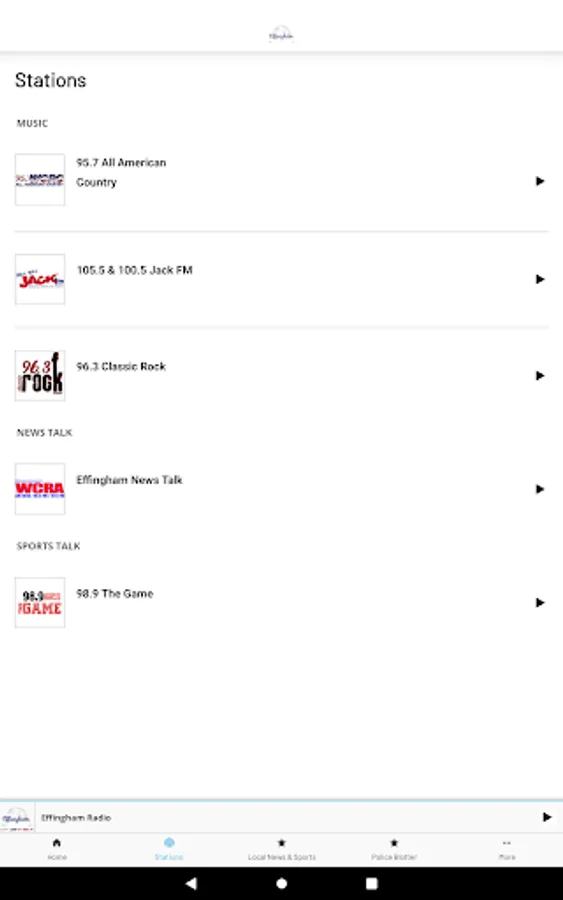 Effingham Radio is your connection to local news, sports, entertainment and community events! Listen Live to 95.7 WCRC, All American Country; Effingham News Talk, WCRA 1090 AM, your home for the Trading Post; 98.9 The Game, with ESPN and sports-talk radio; and 105.5 & 100.5 Jack FM. We will provide you with breaking news and weather updates in the area. And stay up-to-date with concert information, ticket giveaways and promotions. Let us be your one stop for news and entertainment!