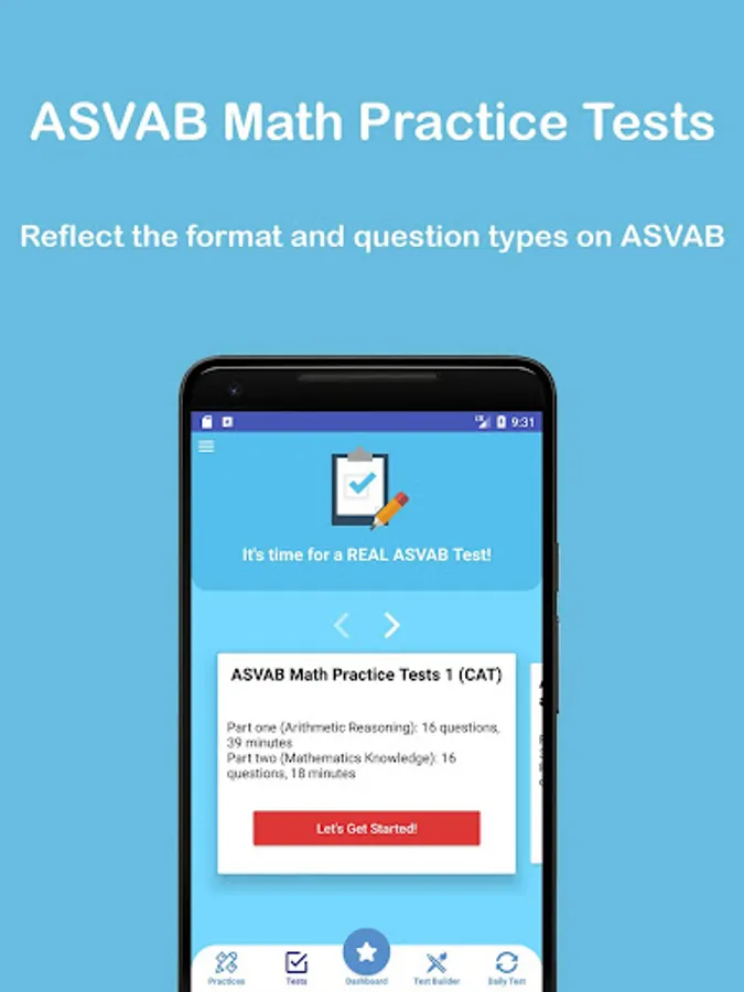 This is an intensive preparation for the ASVAB Math test, and a precious learning tool for test takers who need extra practice in math to raise their ASVAB Math scores. After completing this app, you will have solid foundation and adequate practice that is necessary to ace the ASVAB Math test. This app is your ticket to score higher on ASVAB Math.