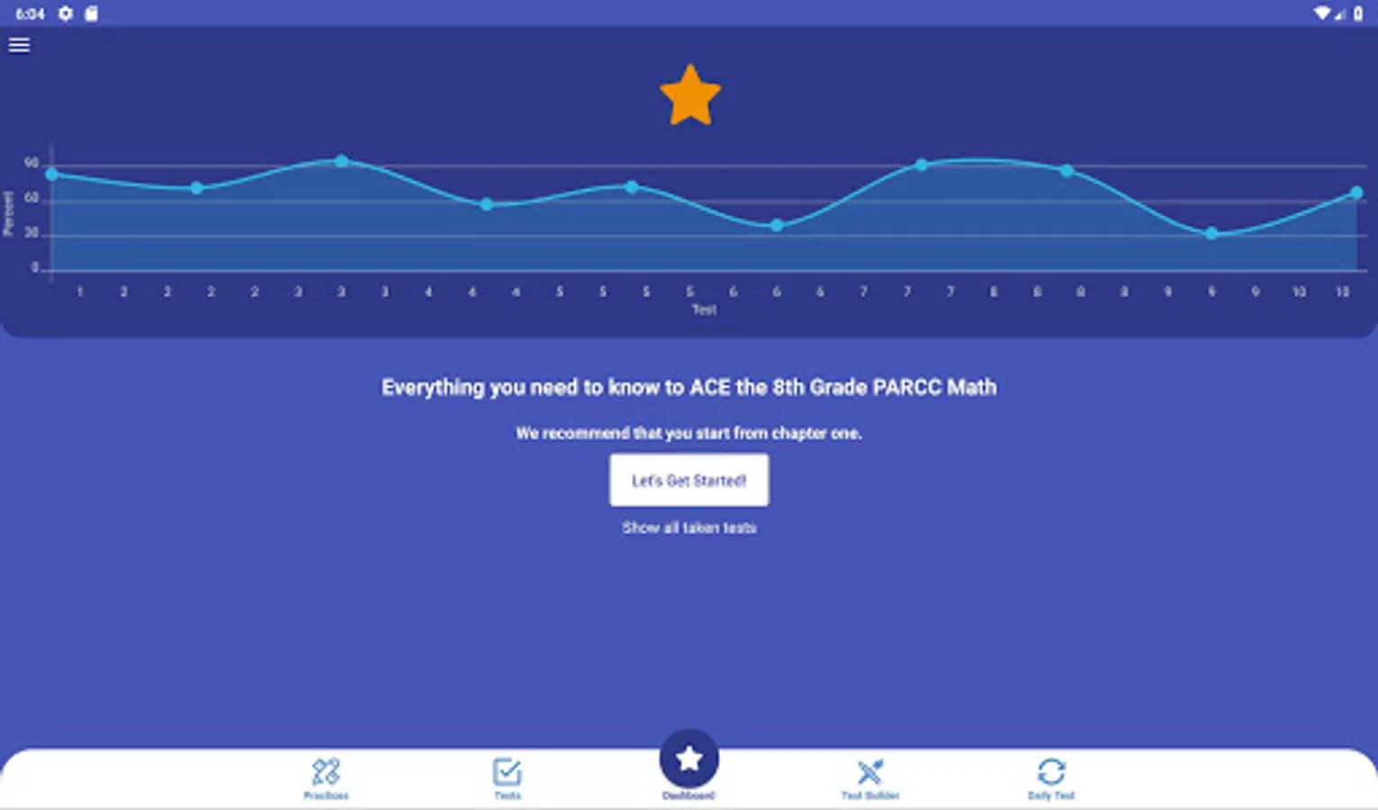 * Access to statistics of your answers in Grade 8 PARCC tests on a graph