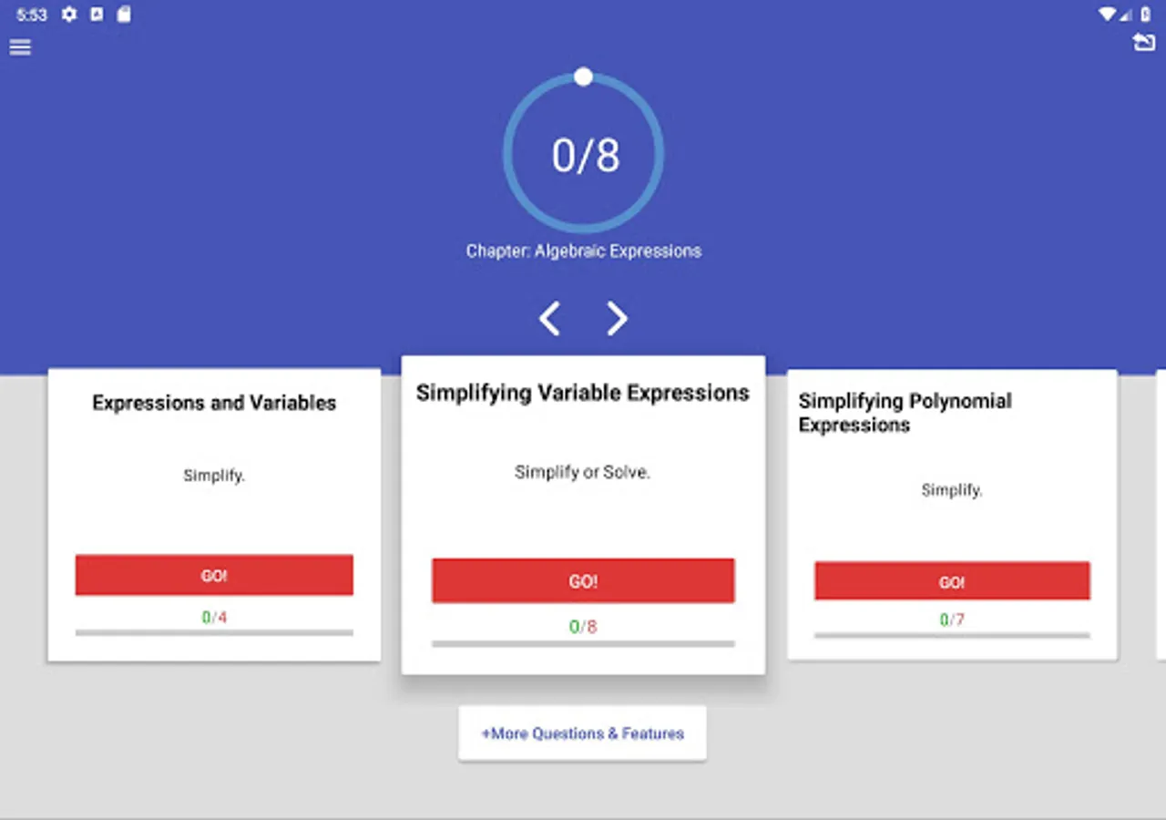 * Math topics are grouped by category, so you can focus on the topics you struggle on