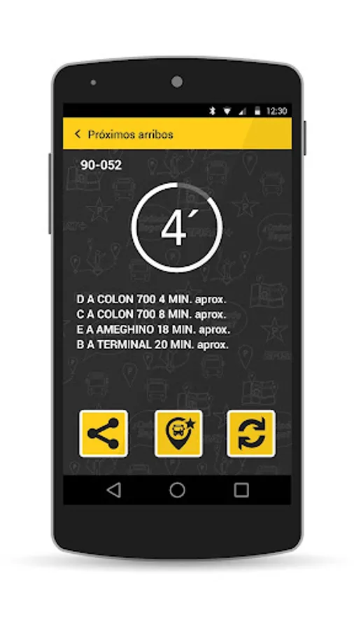 This application allows to know the time of arrival of a collective to a determined stop through different options and functionalities.