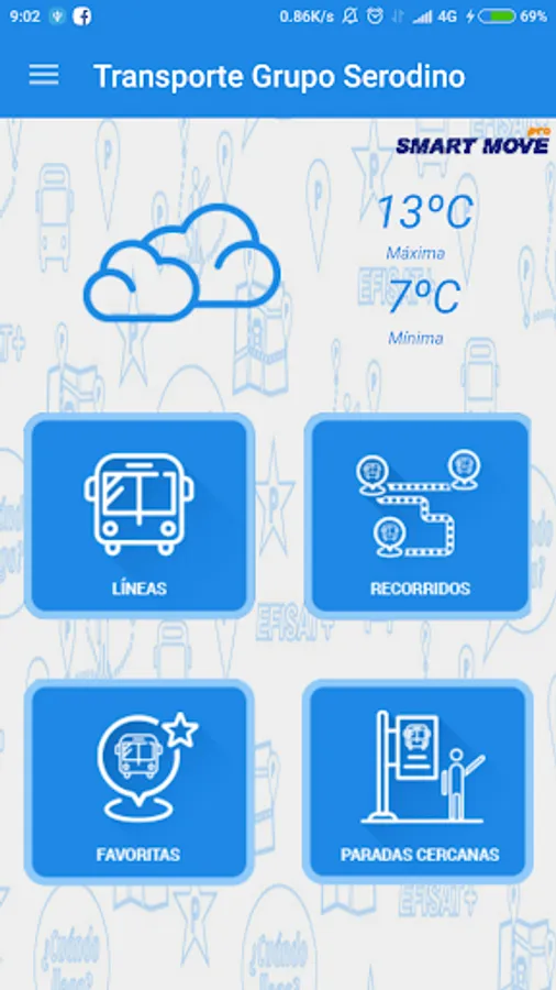 This application allows to know the time of arrival of a collective to a determined stop through different options and functionalities.
