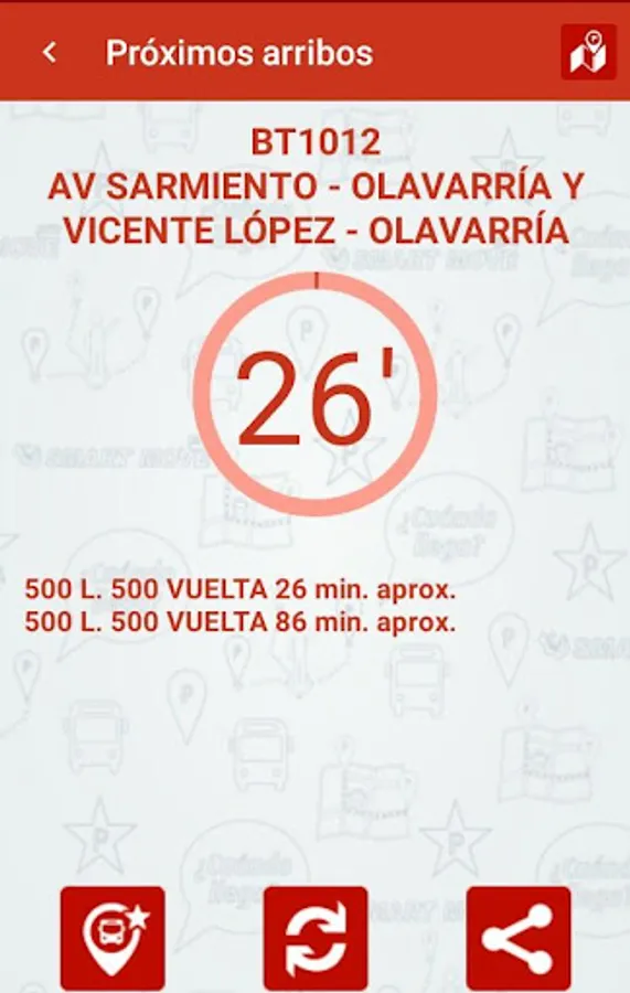 * Possibility to share the application and the next arrivals through SMS and social networks.
