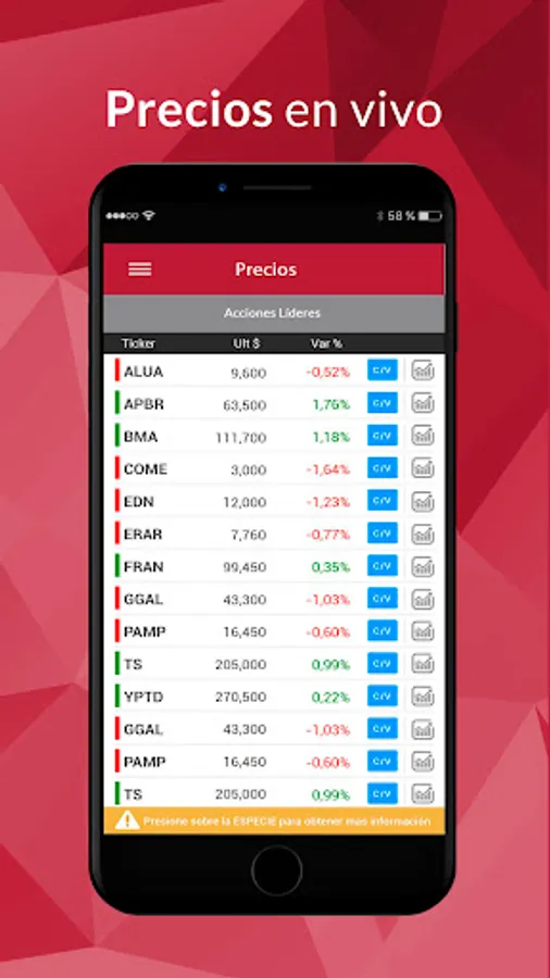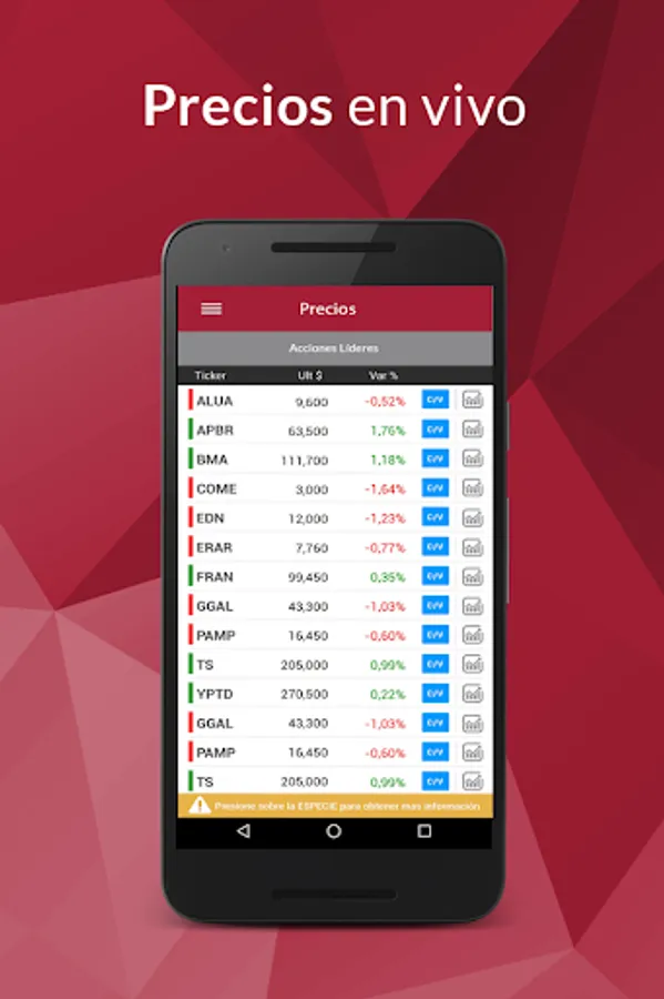 Prices in real time and access to detailed information on each species.