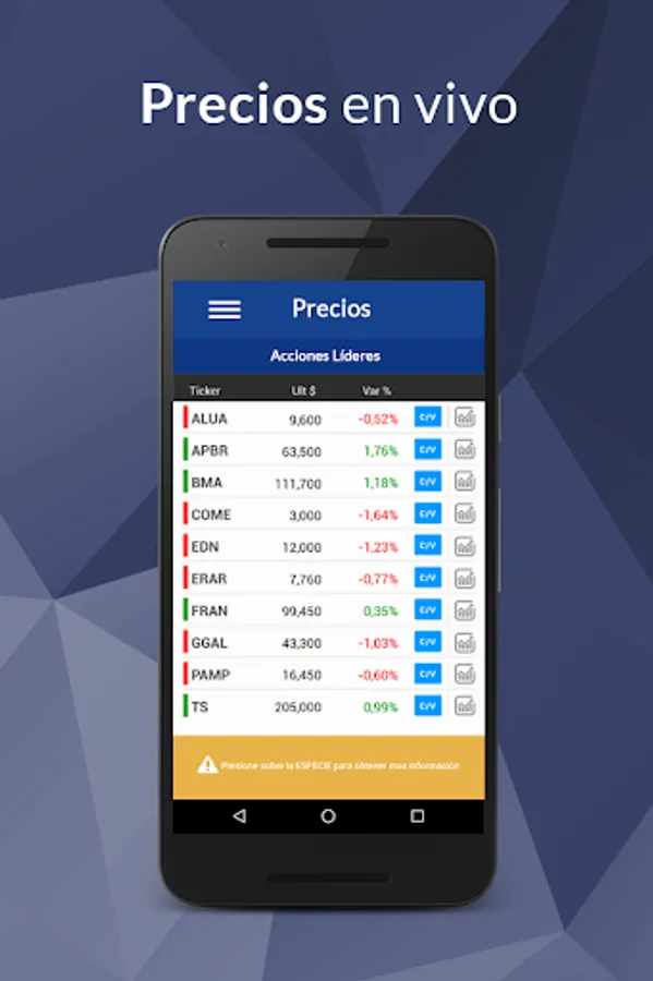 Prices in real time and access to detailed information on each species.