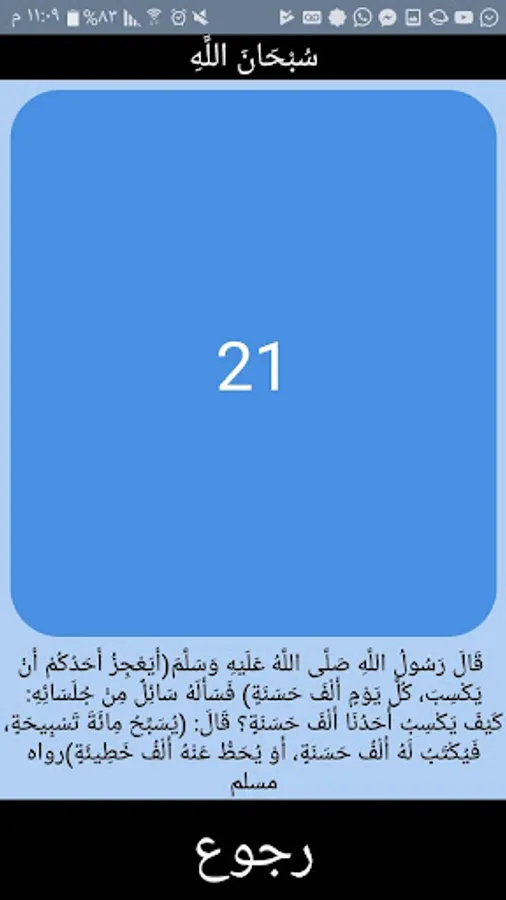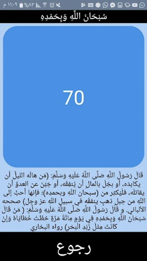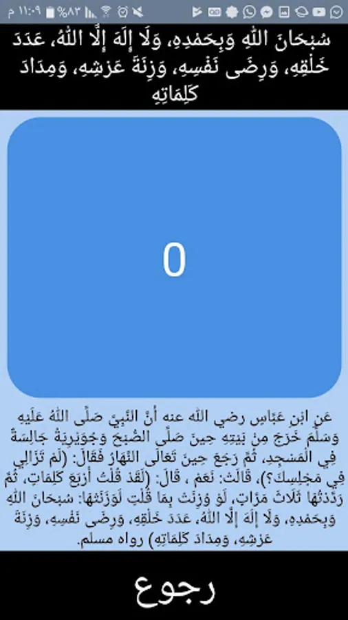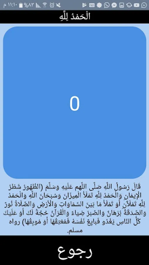 This program does not contain advertisements and is not intended for material gain. This program aims to urge the mention of God and record the frequency of the repetition of the remembrance and reward. The reward of reciting each male was written with the evidence of the correct hadiths. The number of times the male is mentioned in the program memory is stored so that you can find out how many times you mentioned this male and the reward you received since using this program. We ask you to pray and accept God from us and from you and gather you and you in Paradise higher than paradise.