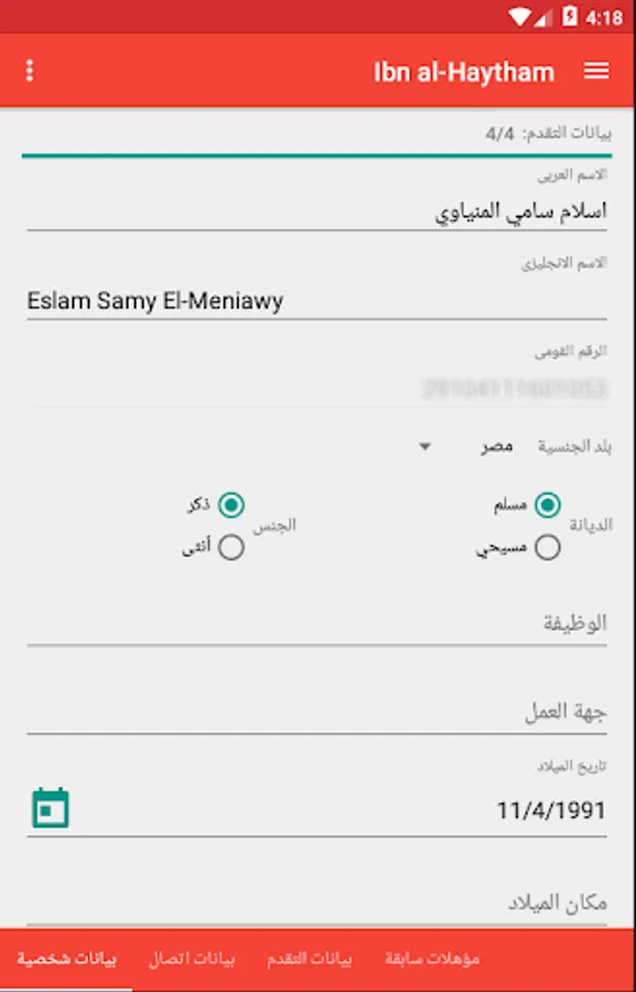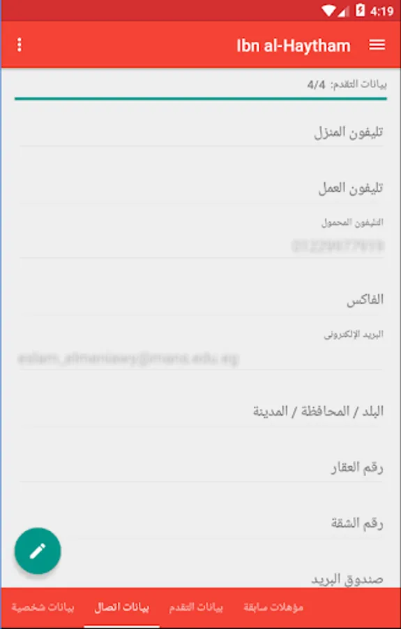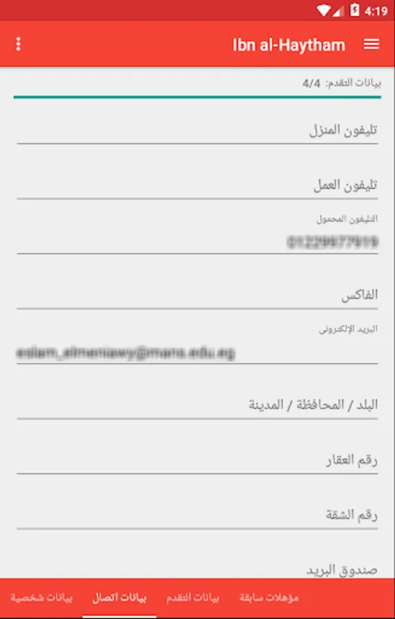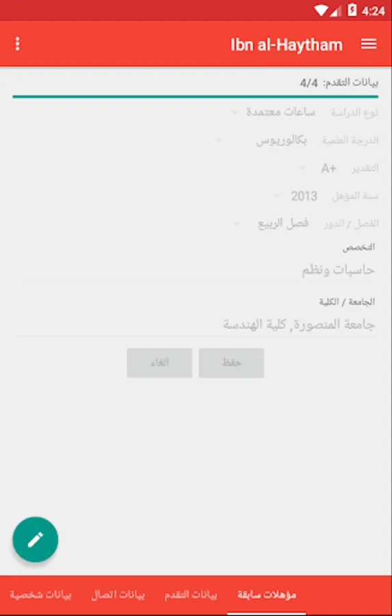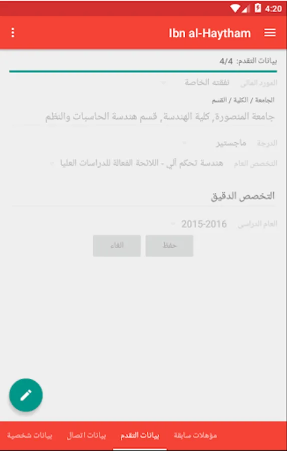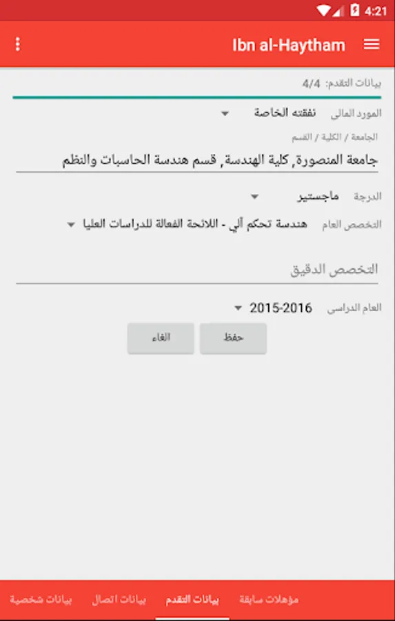 Application for advanced students for postgraduate studies allows the possibility of progress and record personal data and social data and contact details its own.