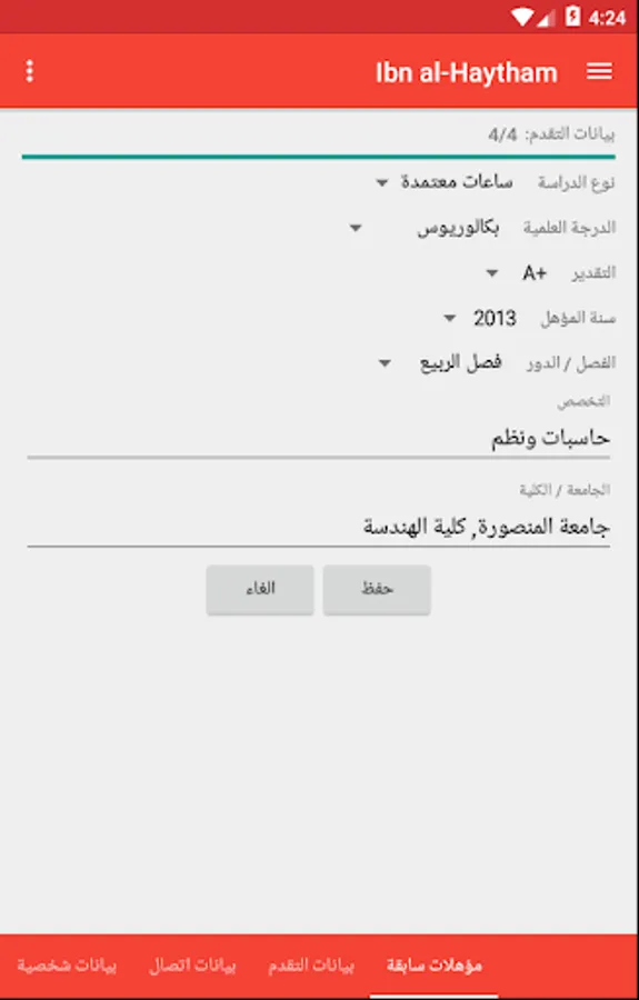 Also it provides an advanced student Add academic qualifications obtained previously.