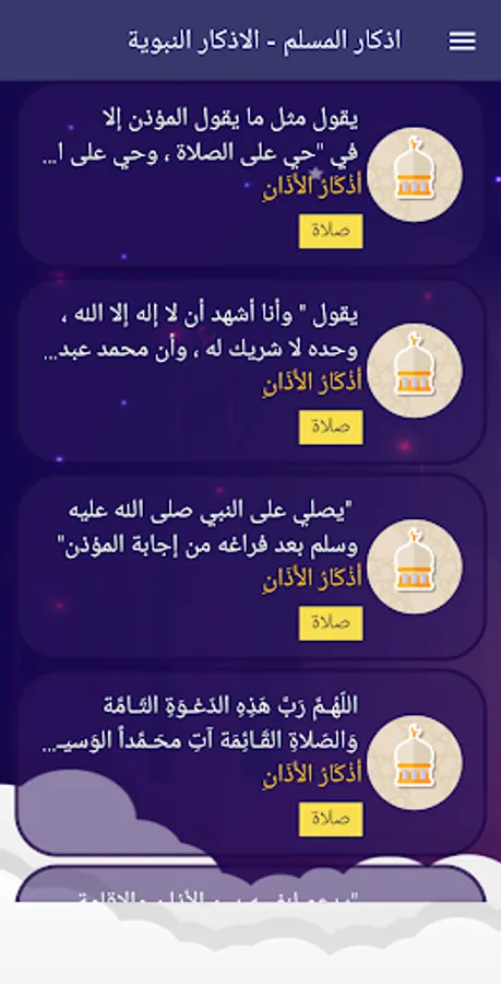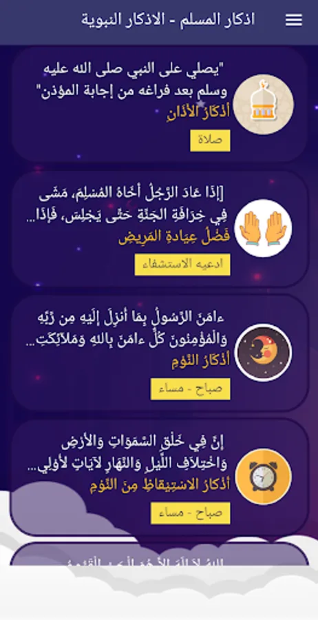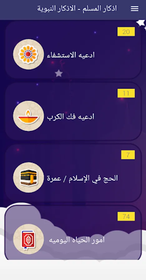 - In the application of Muslim Fort, the Azkar were indexed for easy navigation