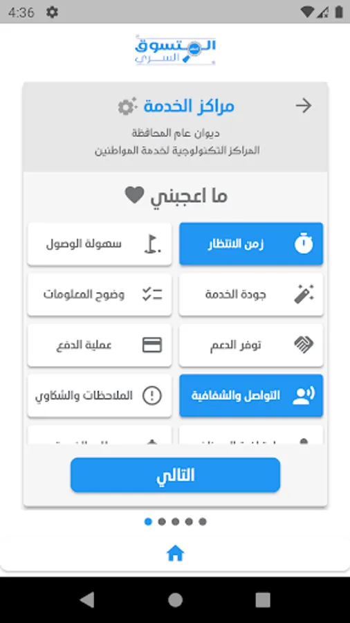 Users can rate the overall experience in the service center and evaluate various aspects of their experience including waiting time, clarity and ease of the process, expiry time, service fee, payment method and employee behavior.