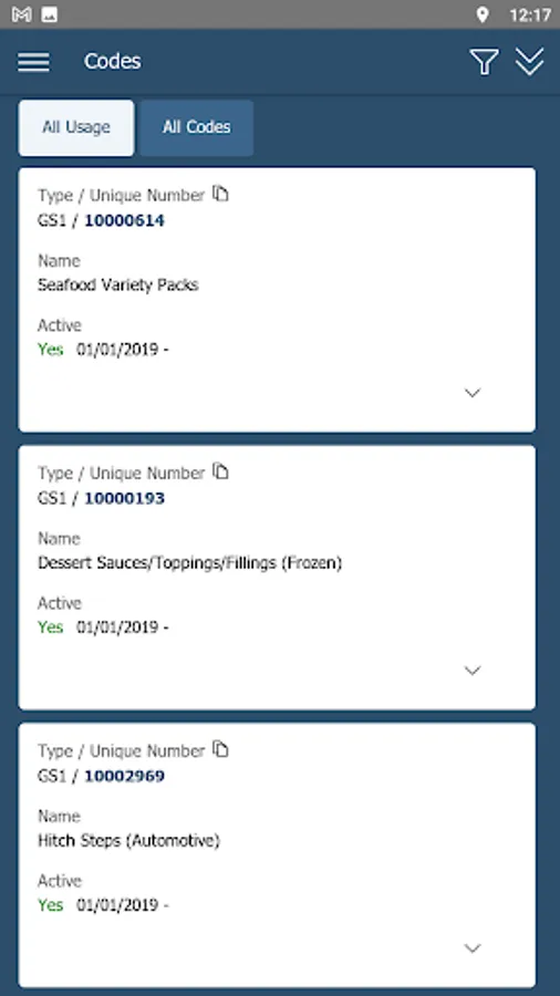 - Search for published GS1 and EGS codes with the ability to view the details of codes.