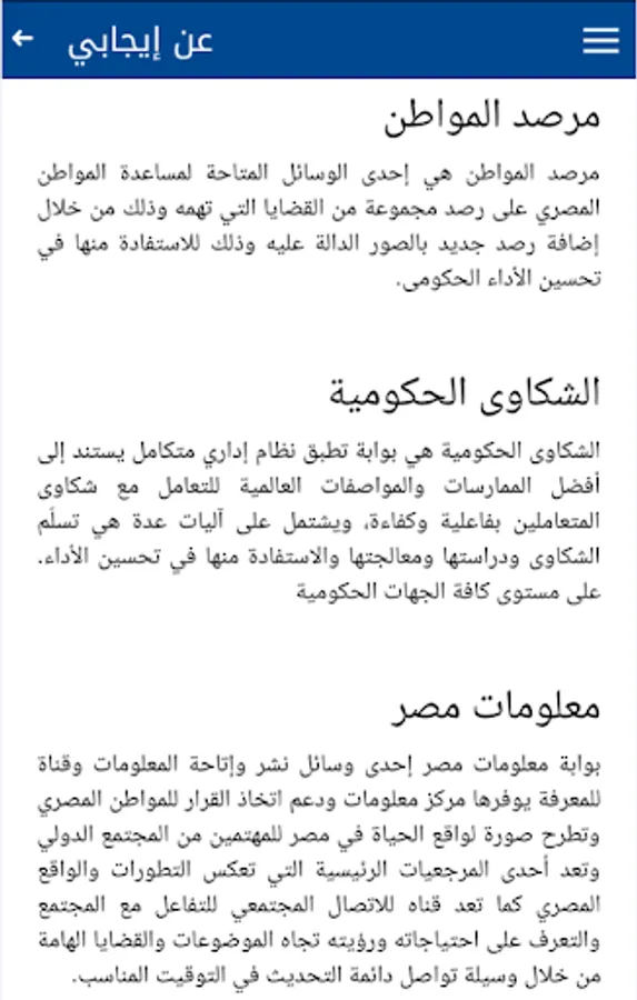 مرصد المواطن هي إحدى الوسائل المتاحة لمساعدة المواطن المصري على رصد مجموعة من القضايا التي تهمه وذلك من خلال إضافة رصد جديد بالصور الدالة عليه وذلك للاستفادة منها في تحسين الأداء الحكومى.