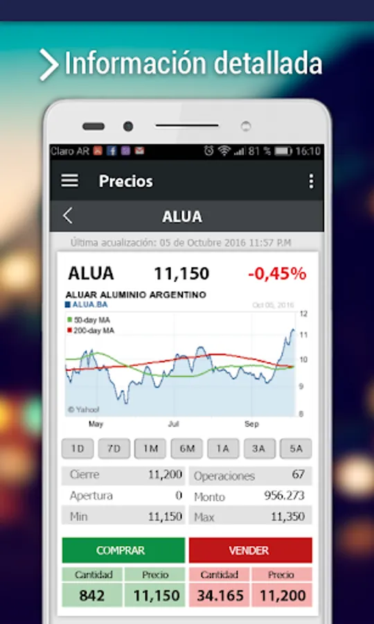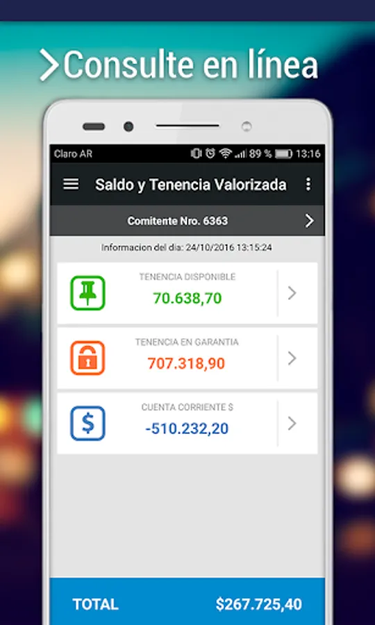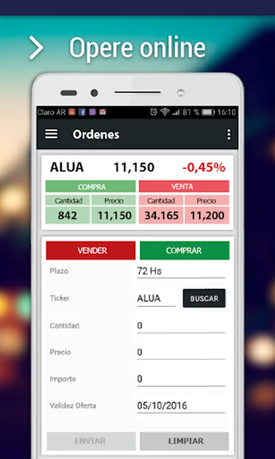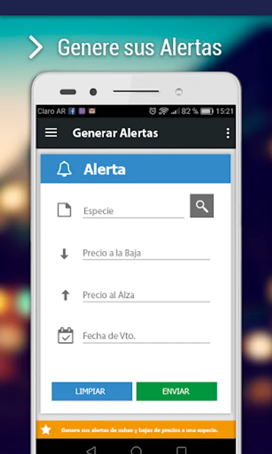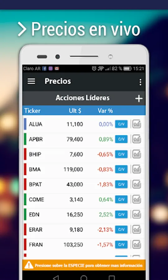 Clicking on each species, we access information from it. From this screen you can enter a command, pressing the C / V