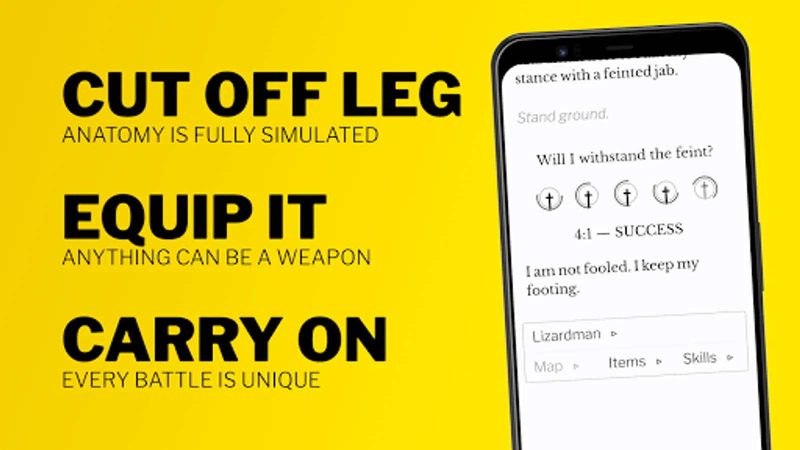 * Dynamic Combat: Simulated to the level of individual body parts. Cleave off someone’s leg, take it, and bash it over their head! A Natural Language Generation system explains what's happening to you in plain English.