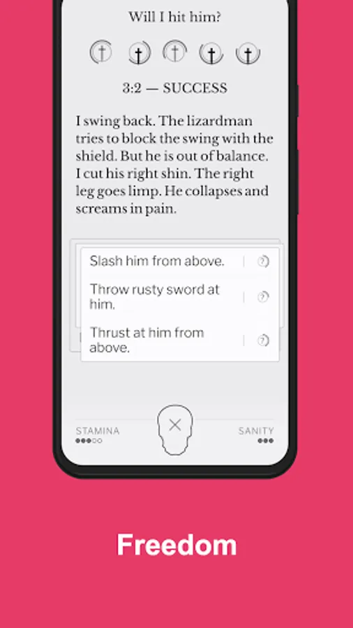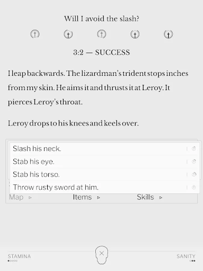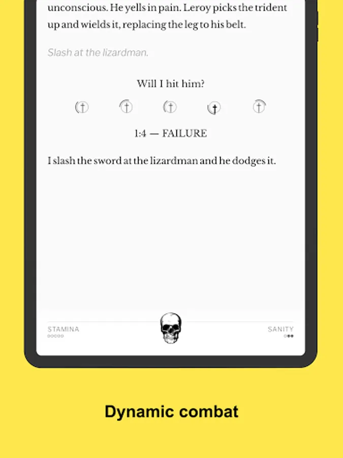 The gameplay is closer to tabletop role playing games than to traditional computer RPGs. Instead of presenting you with numbers and graphics, the game tells you what's happening, the same way a dungeon master would. Things are still meticulously tracked in the background, but there are no big tables to look at or tactical maps to read.