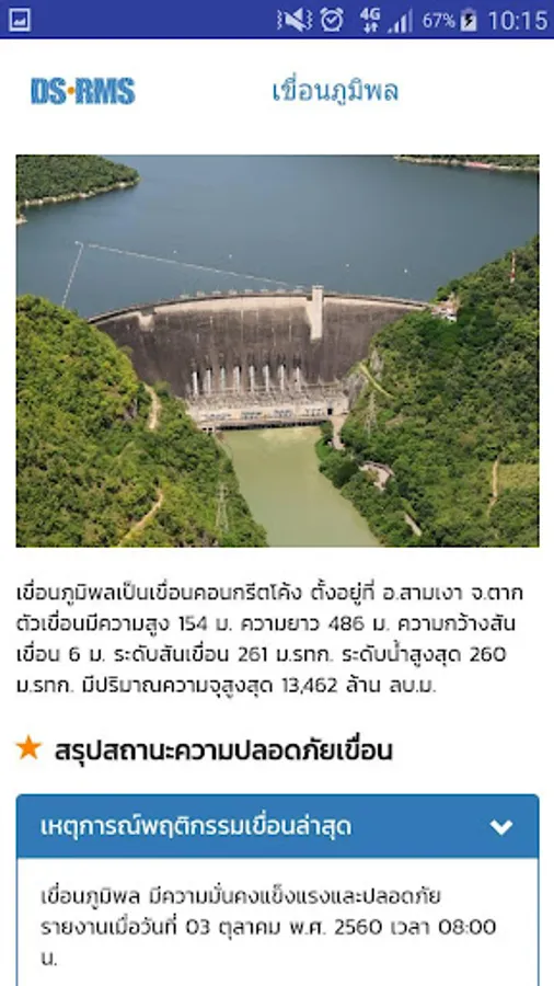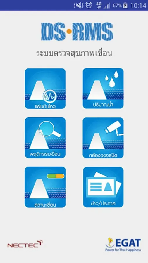 Health check dam system was developed so that people can see the security status of the dam EGAT 14 dams at all times and can see the earthquake. Situation and CCTV cameras which will boost the confidence of the public outside the dams that are under the care of EGAT is strong. And to determine the strength of a dam. Along with the notification system in the event of malfunction of the dam.