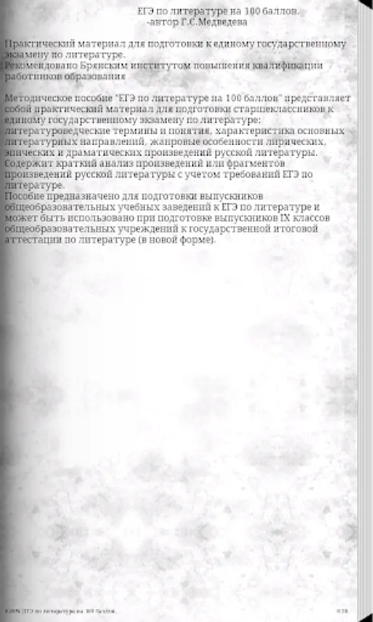 The manual is intended to prepare graduates of educational institutions for the exam on the literature and can be used in the preparation of 9th class education for the GIA in literature (in a new form). Great crib at the time for the exam or GIA.