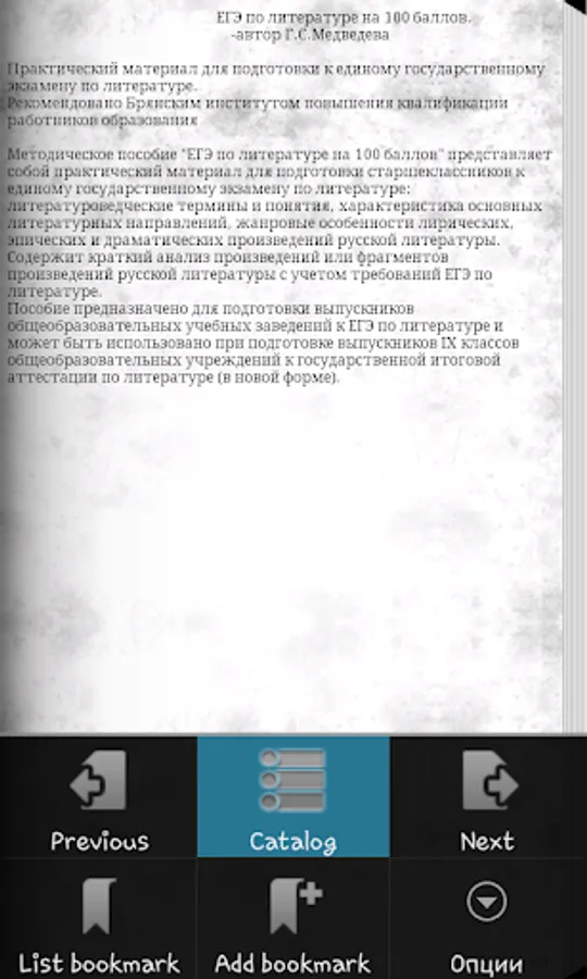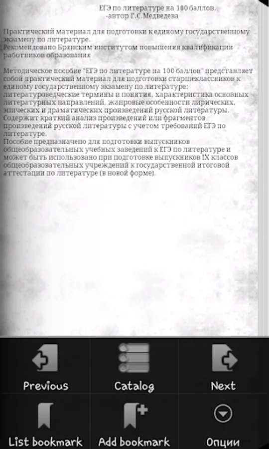 Toolkit for literature exam 100 points is a practical material to prepare for the exam by starsheklastnikov Next Literature: literary terms and concepts, characteristics of the main literary trends, genre features lirichesskih, epic and dramatic works of Russian literature contains a brief analysis of the works or fragments of works of Russian literature with the requirements of the exam in literature.