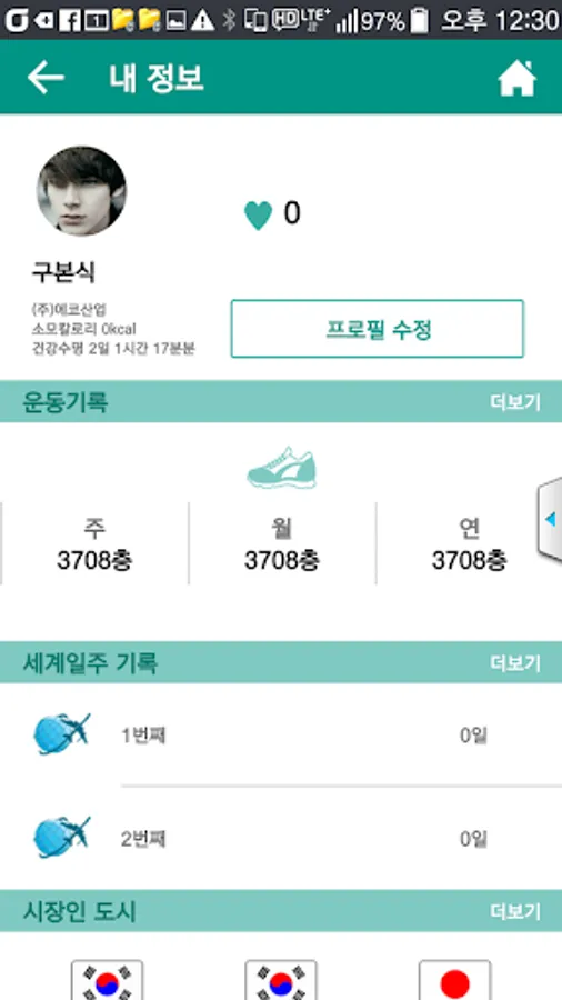 계단을 이용 또는 특정 지역을 이동함으로써 소모칼로리, 건강 수명등이 실시간 확인 되며, 이동량에 따라 세계일주를 할 수 있습니다