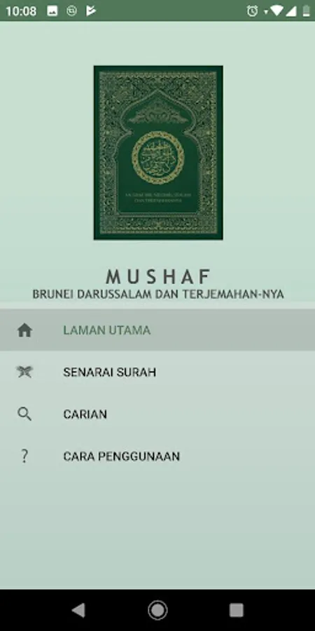 Mushaf Brunei Darussalam mobile app is a platform that act as a platform to teach the members of the public on how to properly recite the Surah in the Al-Quran. It also encourages the public to recite the Al-Quran in a daily basic. The main functionality of this mobile app is to display the mushaf that is approved by the Ministry of Religious Affairs and to listen to the recitation of all the Surah in the Al-Quran.