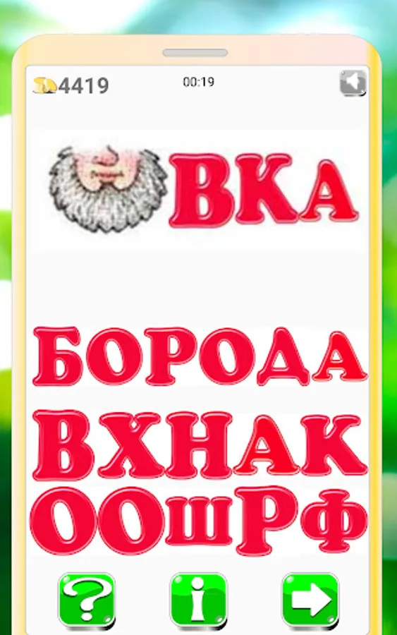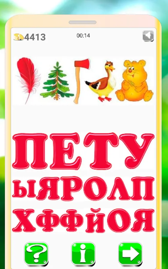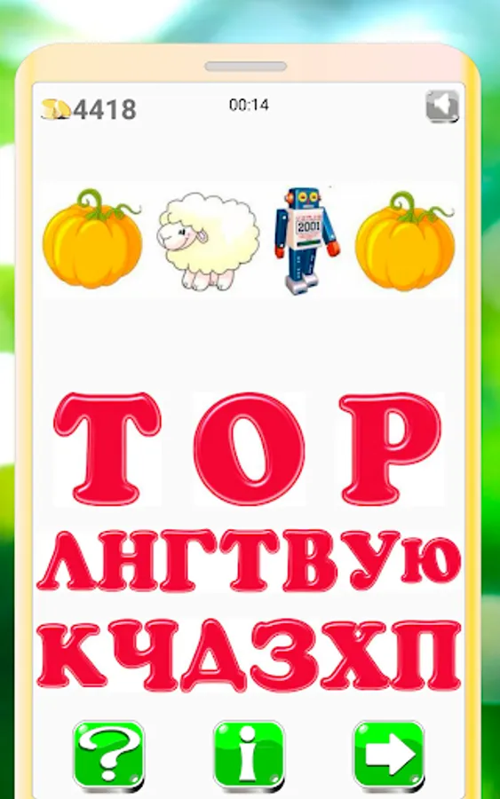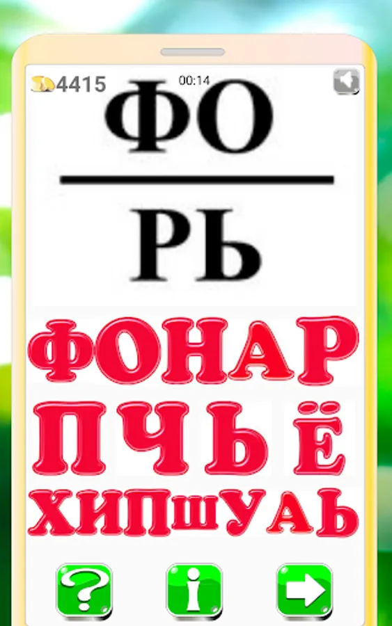 The player is given a word or phrase, encrypted in the form of a sequence of patterns, letters, syllables or numbers, which, if pronounced aloud, should give the desired word or phrase.