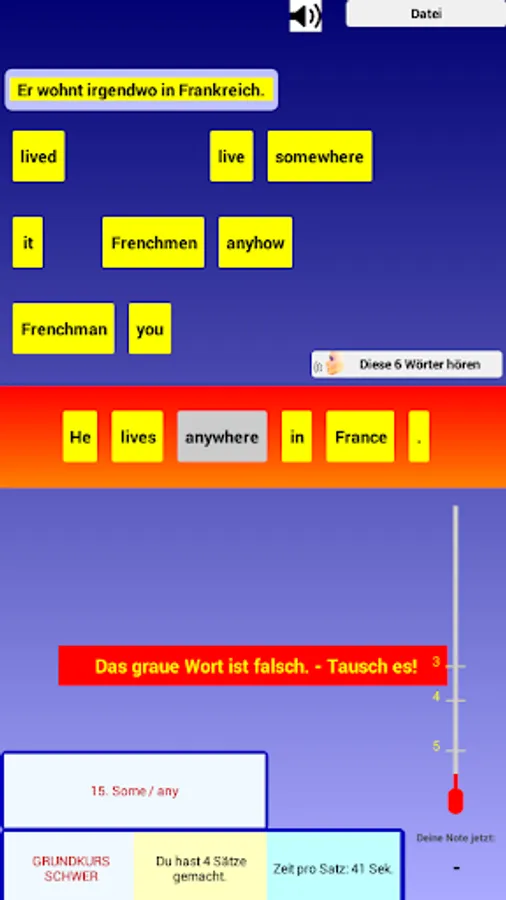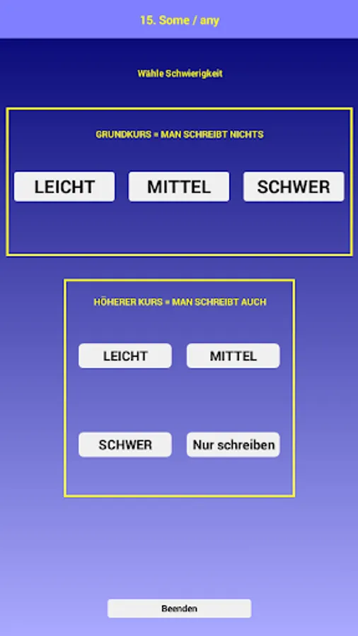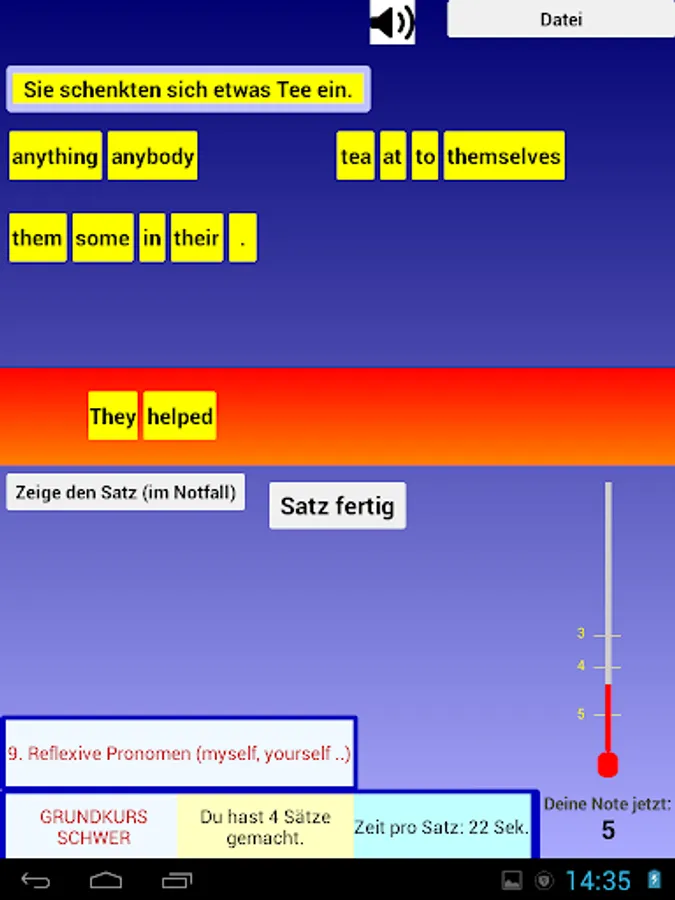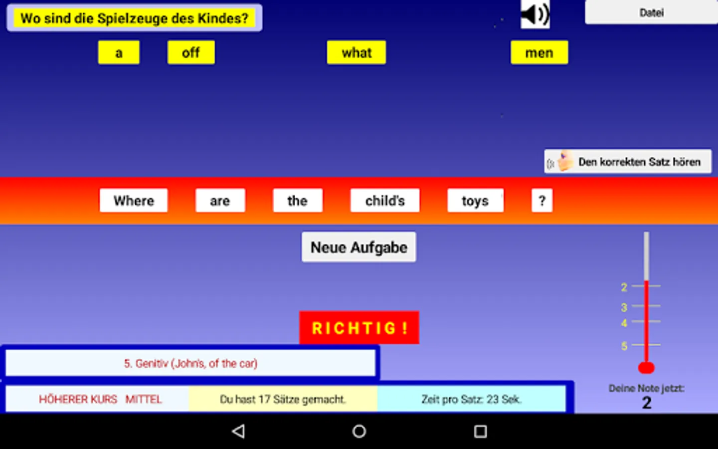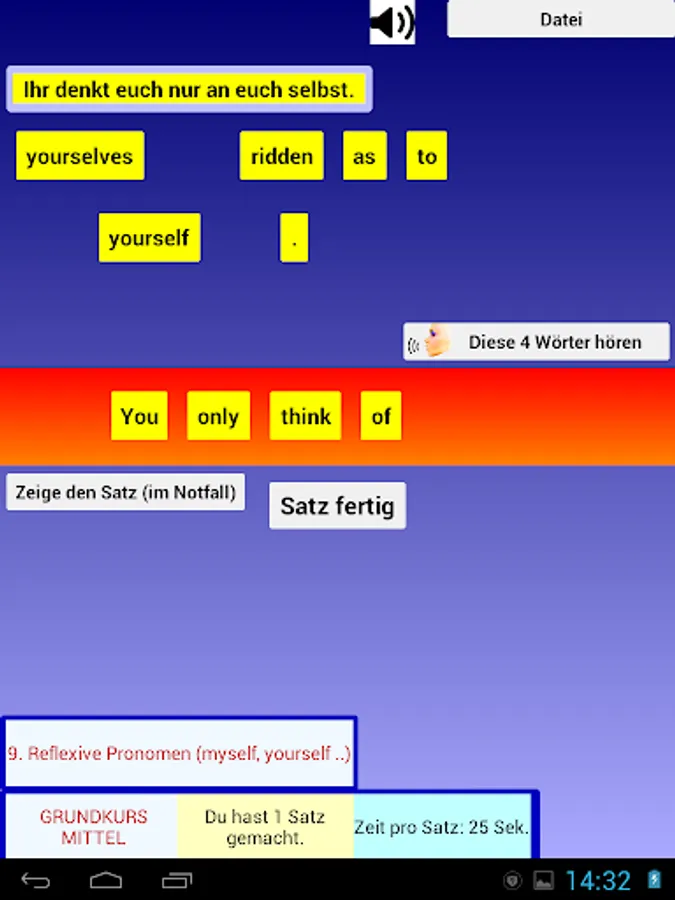 Structured exercises with 7 different levels for beginners as well as university students. The full version has 46 English exercises with more than 2000 practice sentences. This free version only has 25% of the exercises.