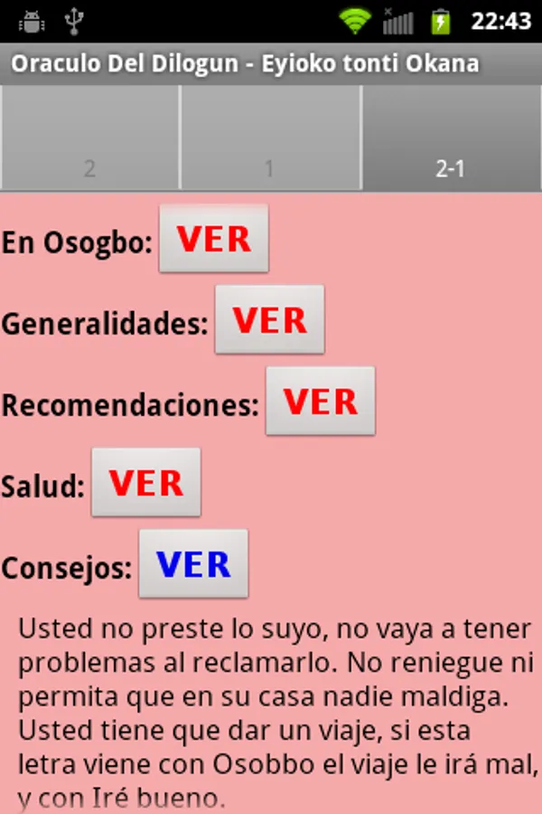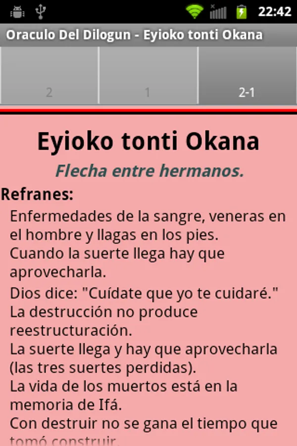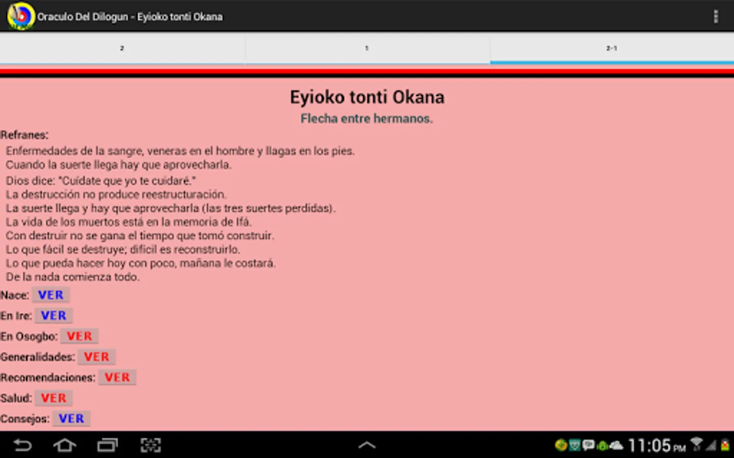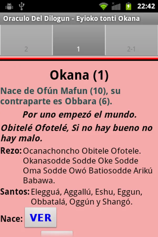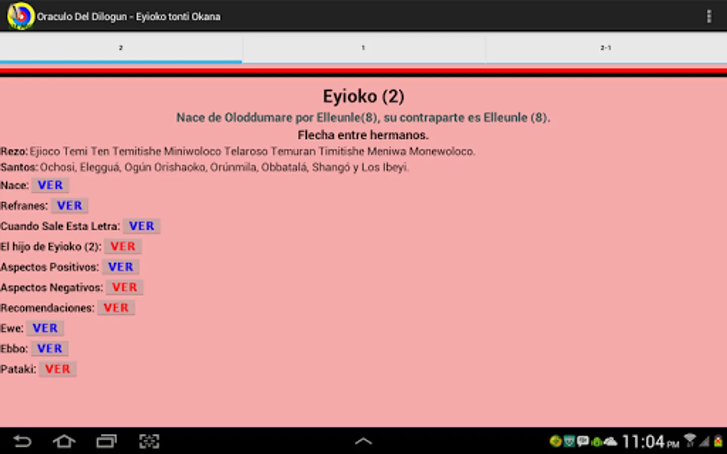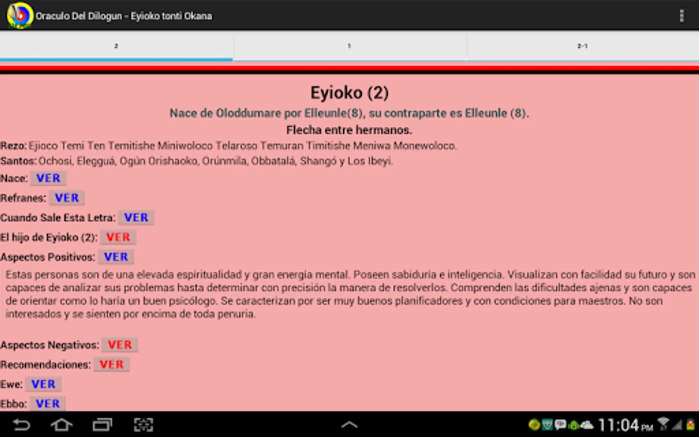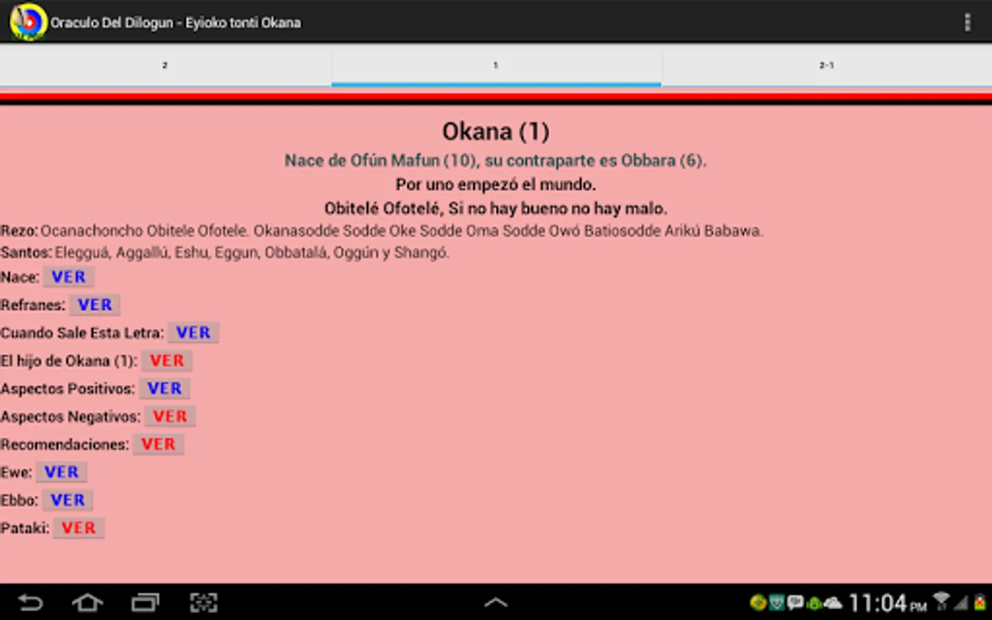 Oracle of Dilogun, this demo aplication allows to Santeros (Iworos) learn about the letras (letters) of the Regla de Osha, their ebboces, recommendations, various aspects (positive, negative, etc ...) and their secrets. In the quest to rescue the Dilogun because today many Italeros speak while are "interpreting" Ifa's Oddun, completely forgetting the meaning of Ocha and proper analysis of the Regla de Osha's letras, and how important they are, we need to rescue and value the Regla de Osha and the good caracoleros.