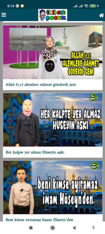 With our application that appeals to the new generations who follow Ahlibeyt aleyhisselam trail, both your children will have spent quality time by watching educational videos, and you, the parents, will be informed about education and other issues.