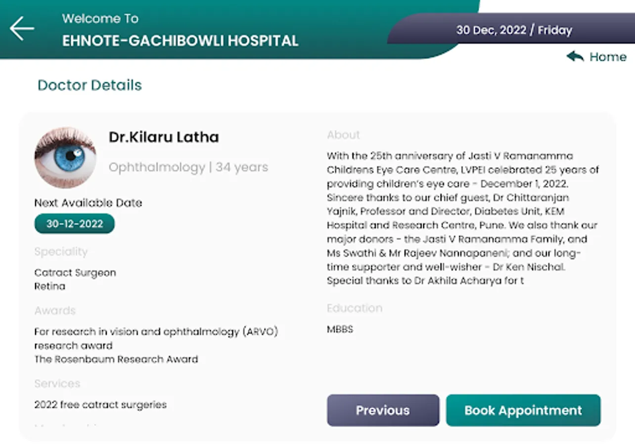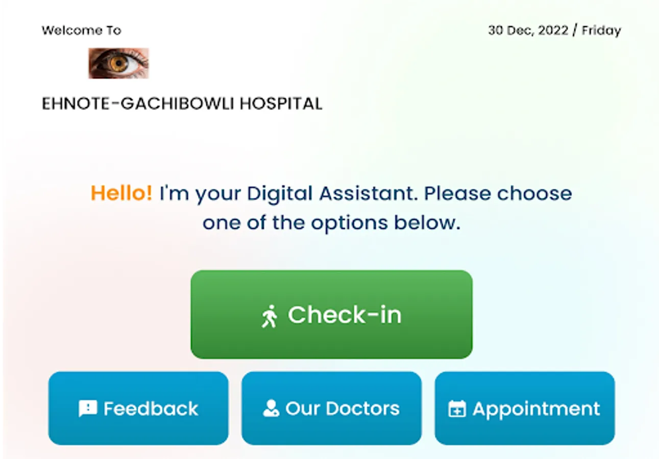 Experience the modern and interactive Digital receptionist for your hospital. EHNOTE DiGi handles all receptionist activities like patient registration, booking an appointment, check-in patient, and modify an appointment. EHNOTE DiGi also captures patient feedback, which helps to improve and enhance the hospital - and that information can be used to make better-informed decisions.