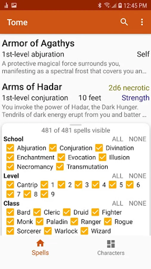- Prominently displays saving throws, damage rolls, and everything else you need when playing.