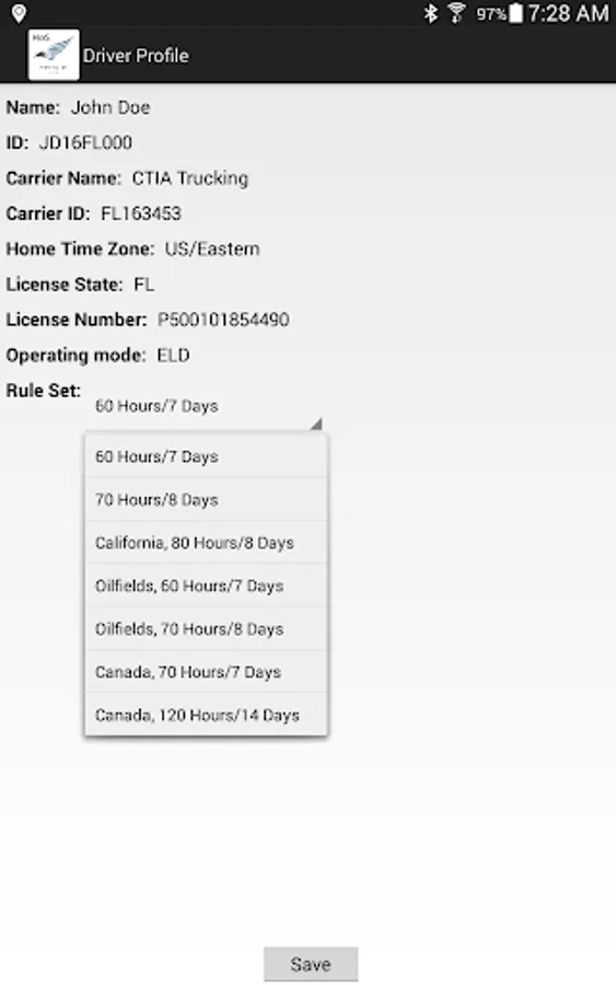 Compliant app to record driver duty status and meet the following regulations: