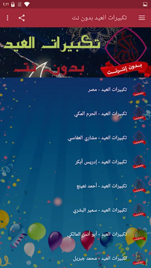 Takbirat audio feast without the net MP3 Eid al-Adha and Eid al-Fitr is an application that collects a large number of takbeer sounds for a number of sheikhs and countries.